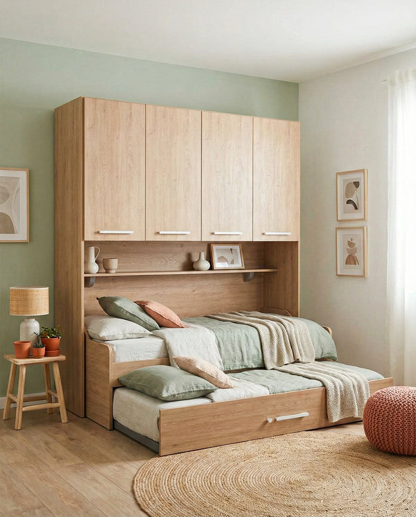 Cameretta a ponte Diletta - Armadio a ponte salvaspazio - 4 ante - 7 varianti colore personalizzabili - Letto estraibile opzionale - 205 L. x 230 H. x 52 P.
