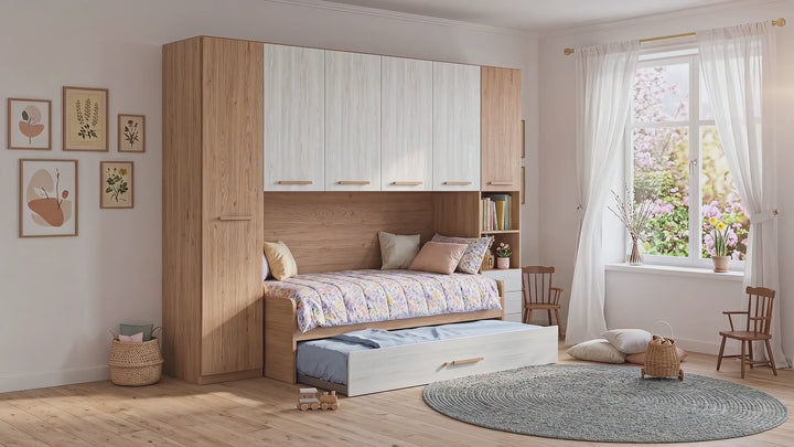 Mobile ALVER – Mobile Complementare con Cassetto, 2 Ante e Ripiani a Giorno Bianco e Olmo