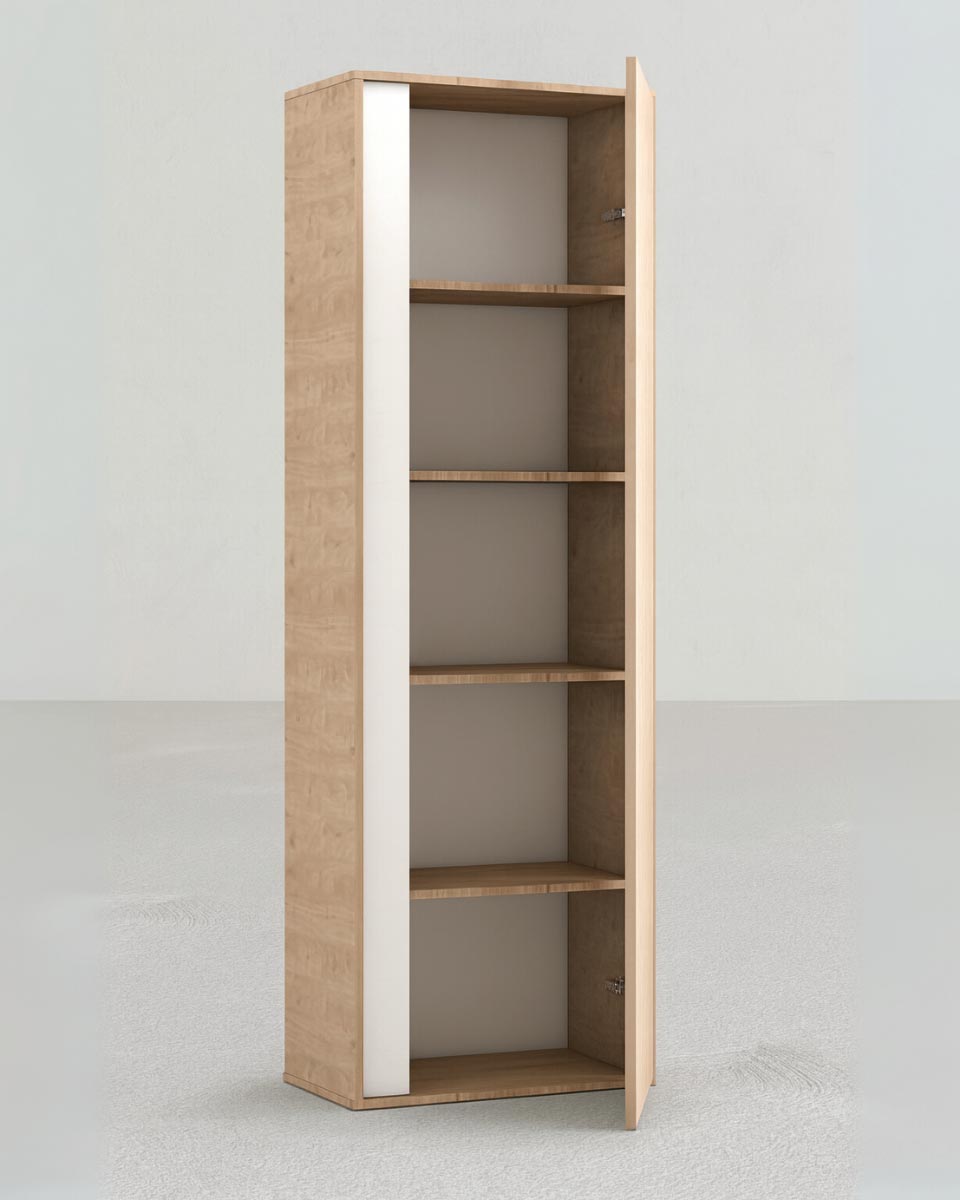 Grazie alla singola anta verticale, il mobile mantiene un aspetto pulito e lineare, proteggendo il contenuto dalla polvere e garantendo ordine in ogni stanza. La sua profondità ridotta permette di collocarlo facilmente anche in corridoi, nicchie o dietro una porta.