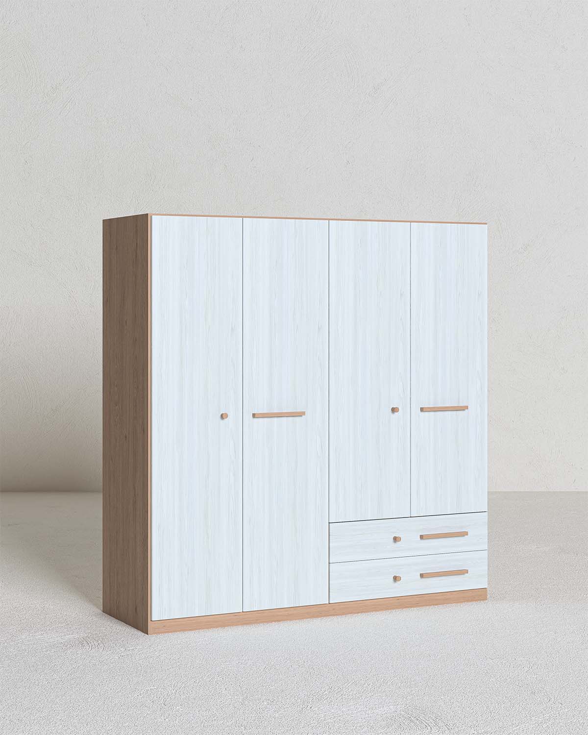 Armadio Dante H.186 - Guardaroba moderno - 4 ante 2 cassetti - 8 varianti colore personalizzabile - 1 ripiano regolabile incluso - Ripiani regolabili opzionali