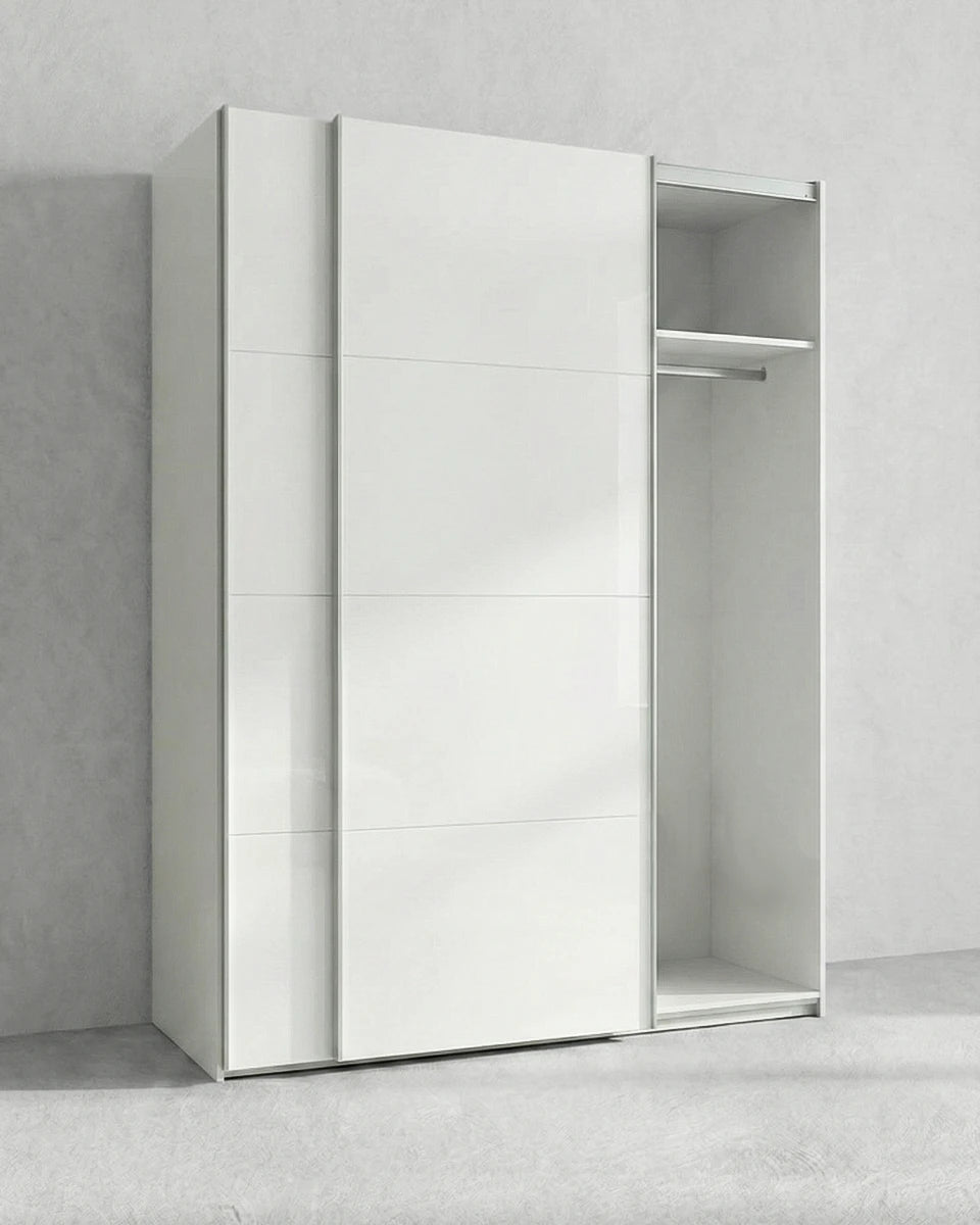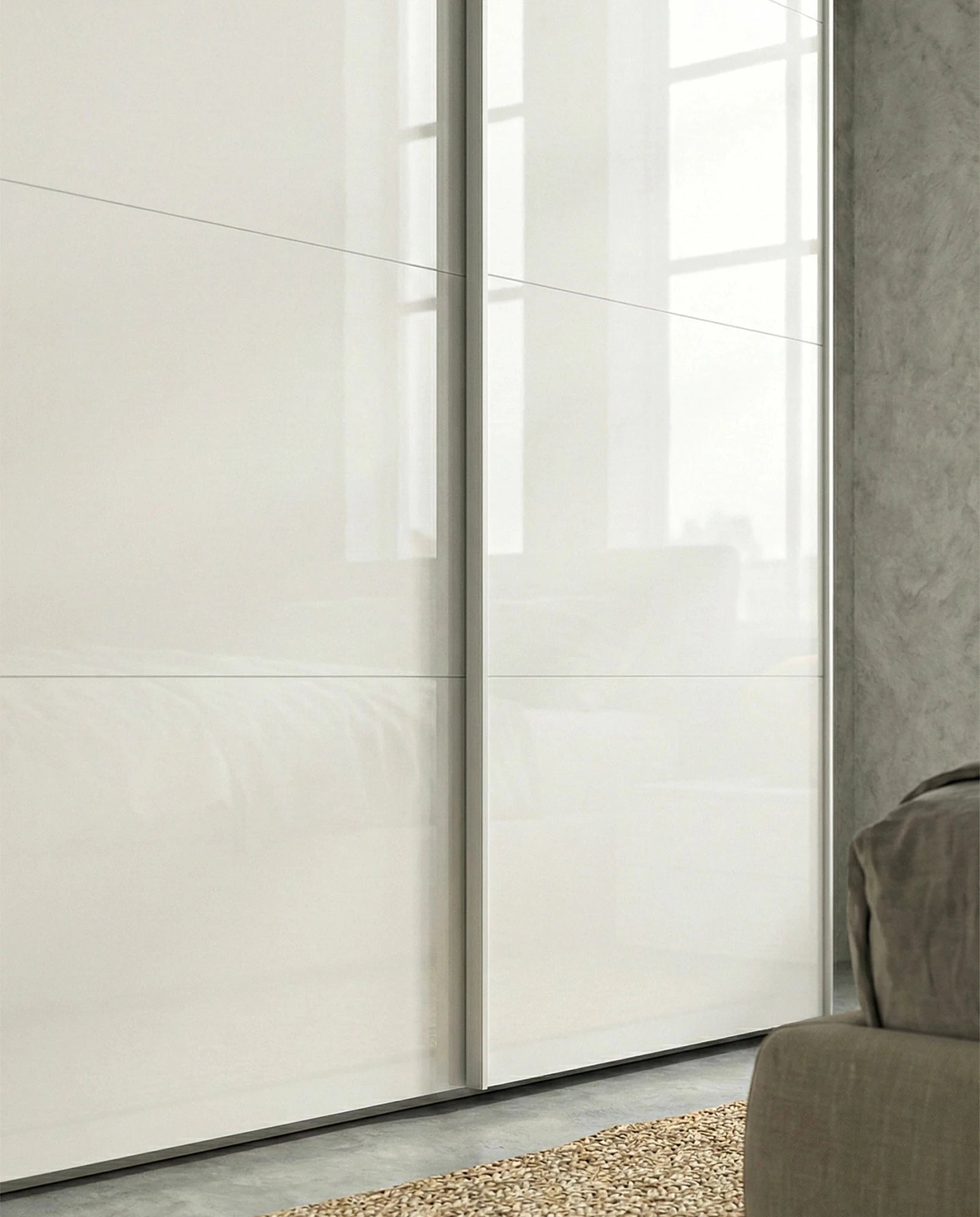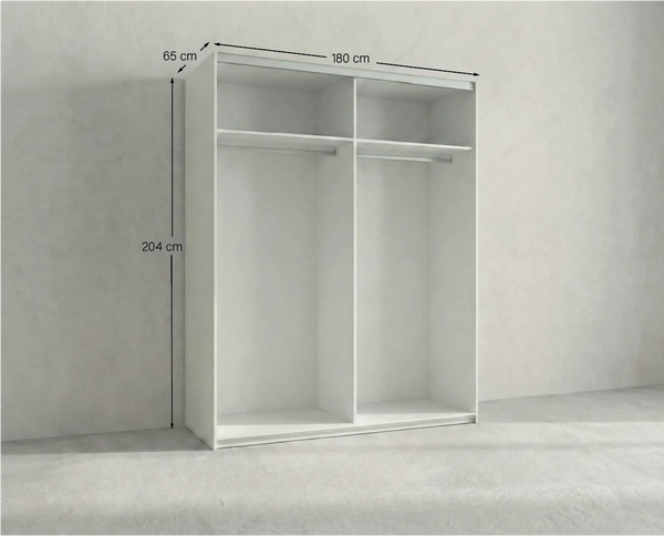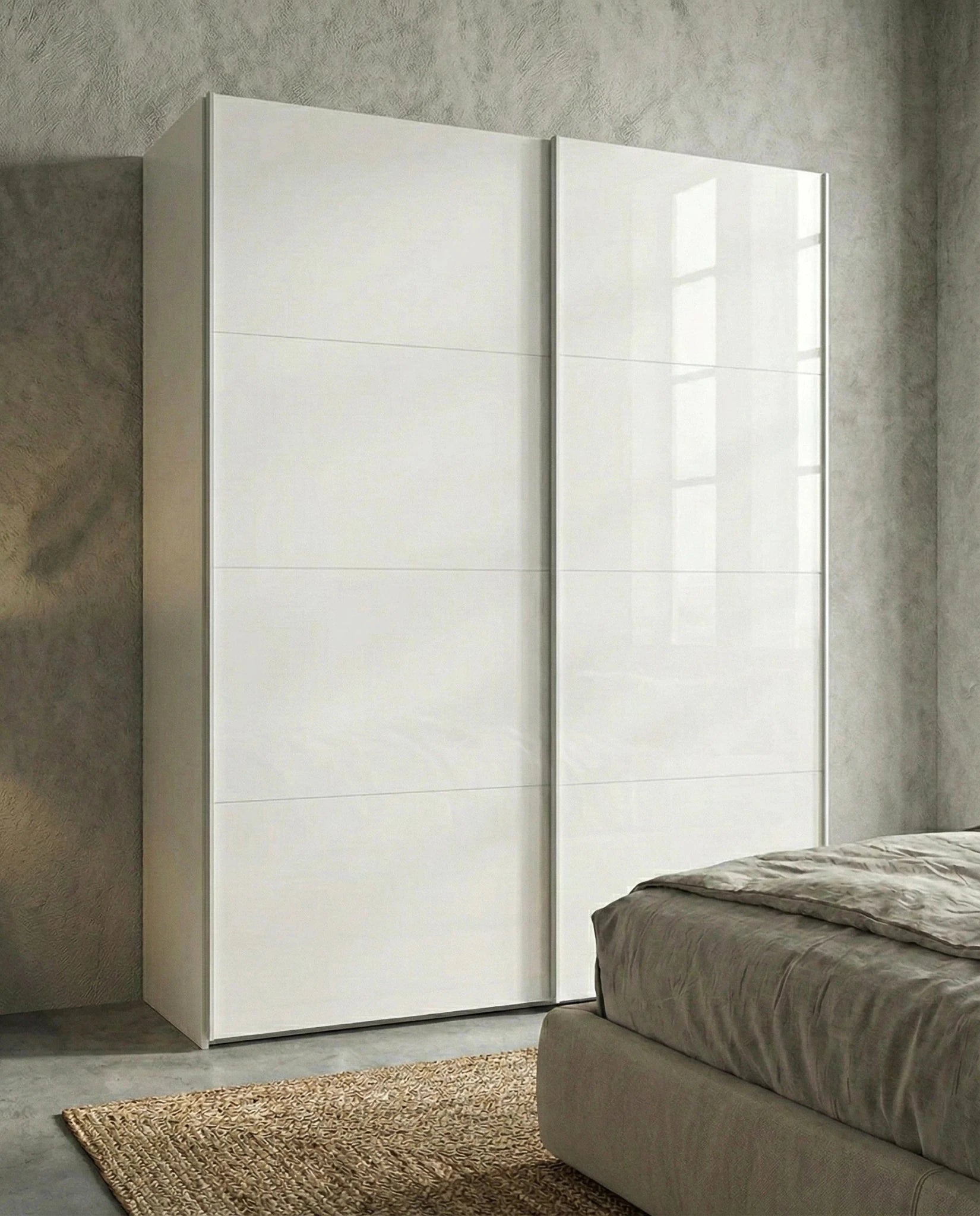 Armadio Barcellona - Guardaroba scorrevole moderno - 2 ante - Struttura bianca lucida - 2 ripiano incluso - L. 180 x H. 204 x P. 65 cm