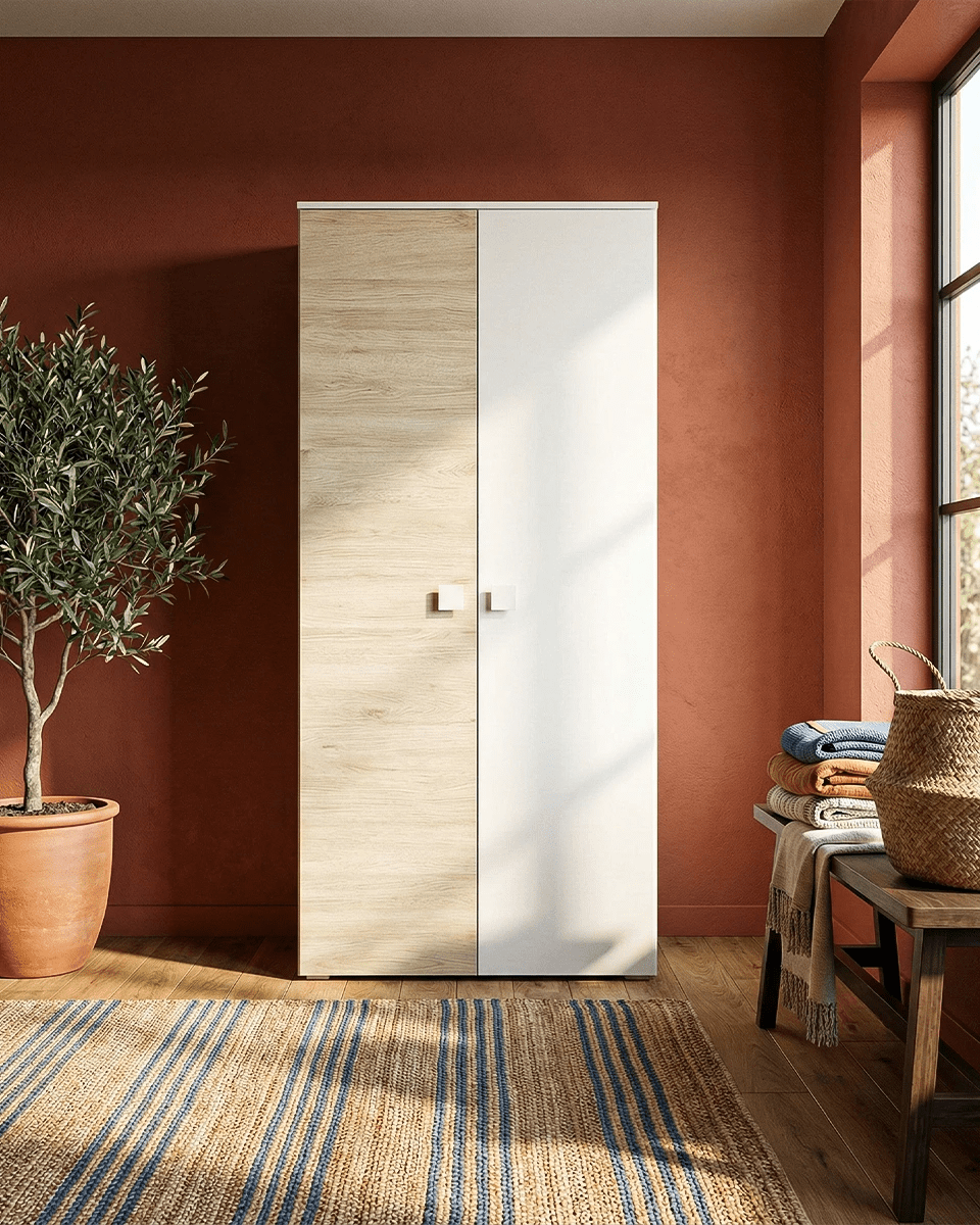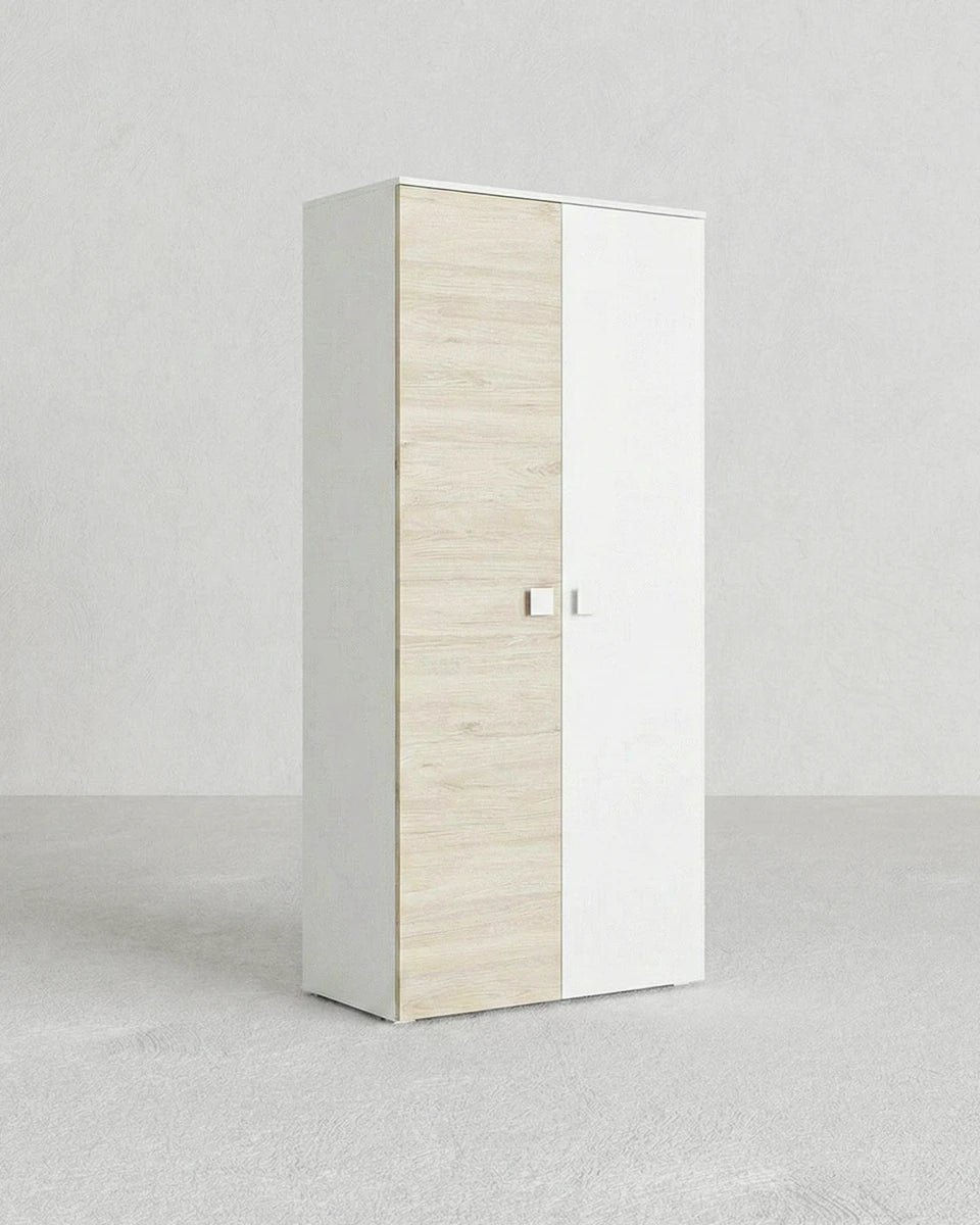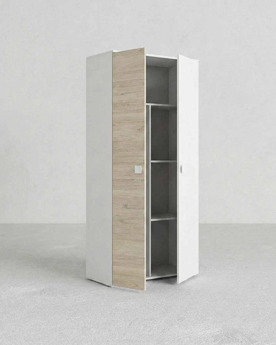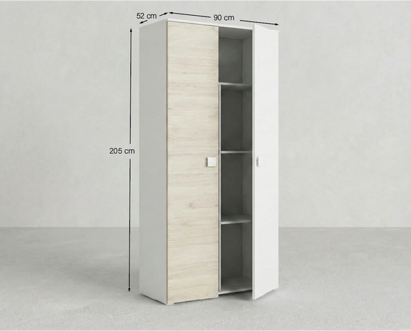 Armadio Bilbao - Guardaroba moderno - 2 ante - Struttura bianca/olmo - 4 ripiani inclusi - 90 x 205 x 52 cm