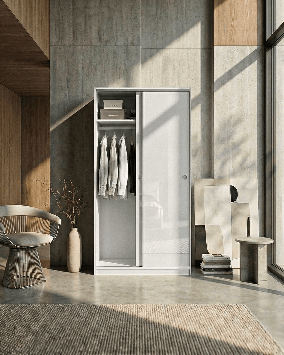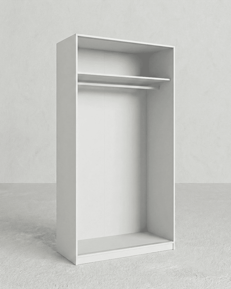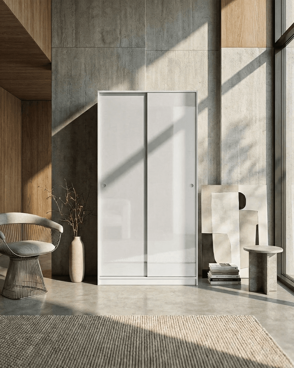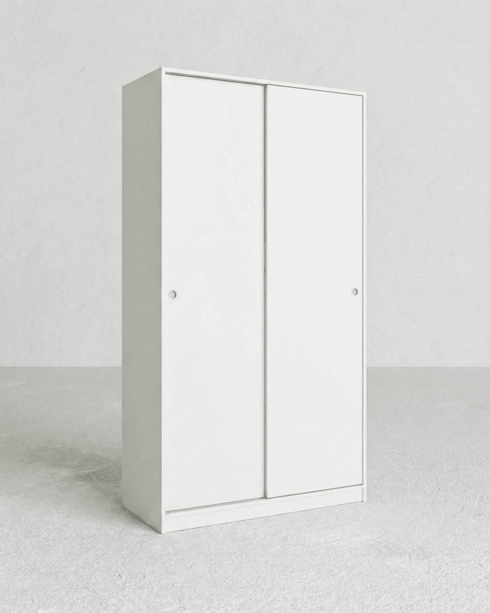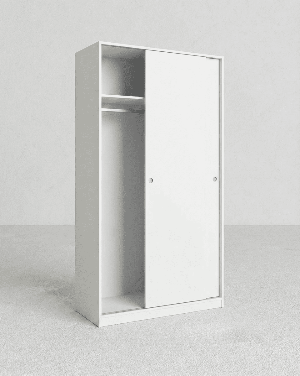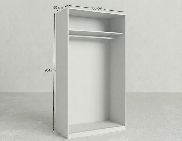Armadio Cordova - Guardaroba scorrevole moderno - 2 ante - Struttura bianca lucida - 1 ripiano incluso - L. 100 x H. 204 x P. 50 cm