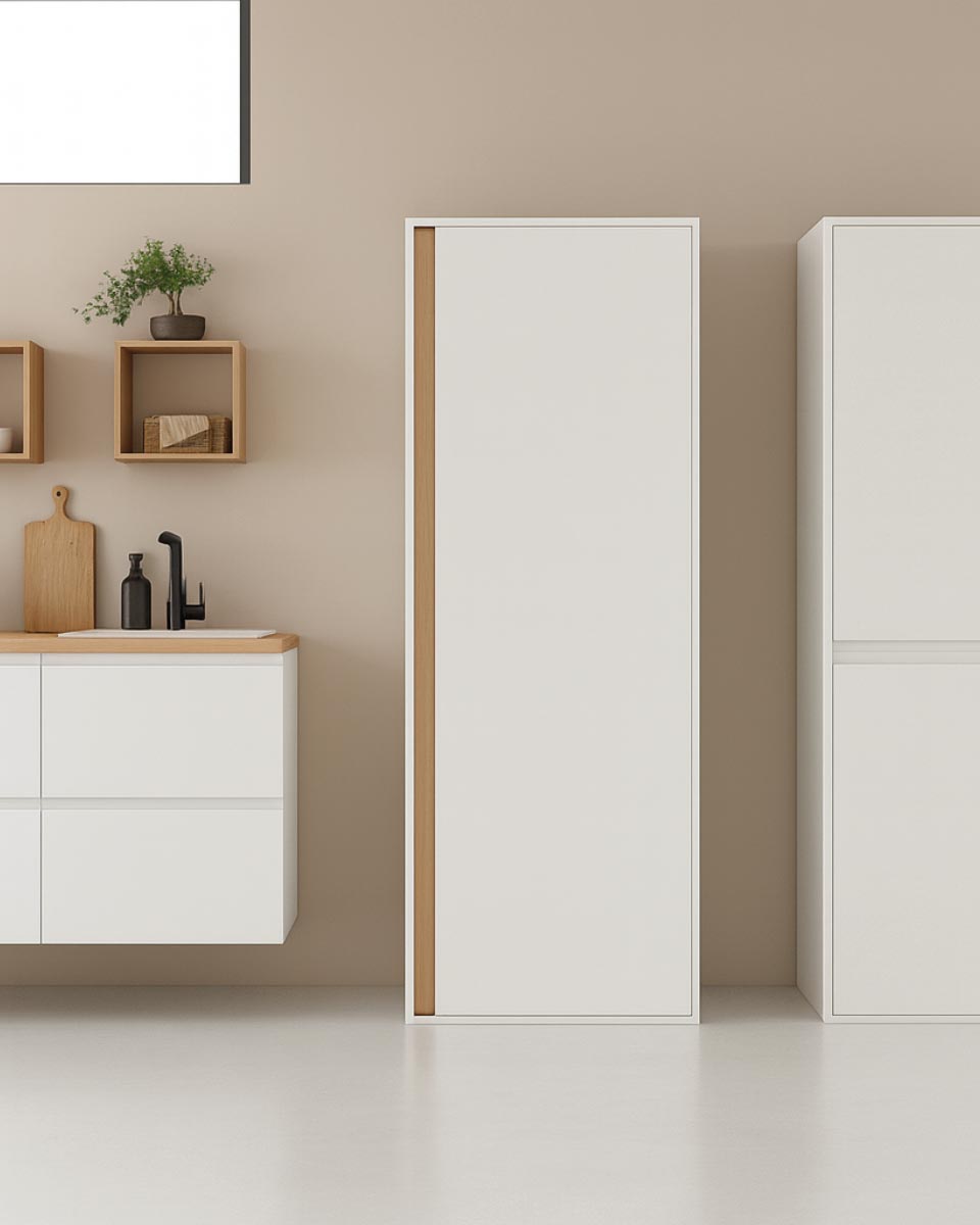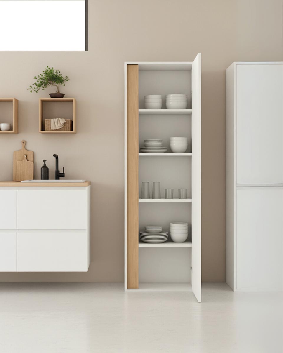 Armadio multiuso Joy - Dispensa salvaspazio con 4 ripiani regolabili - Struttura in bianca con finitura virginia - 60 L. x 176 H. x 35 P.