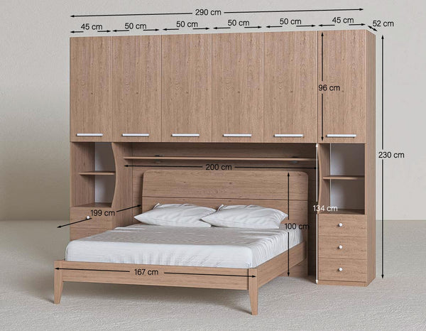 Camera a ponte Ludovica, Letto escluso opzionale, Ripiano sottoponte incluso, L.290cm h.230, in 36 colori