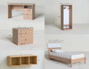 Composizione: 1 letto, 1 scrittoio, 1 comodino, 1 mensola a cubi, 1 armadio.