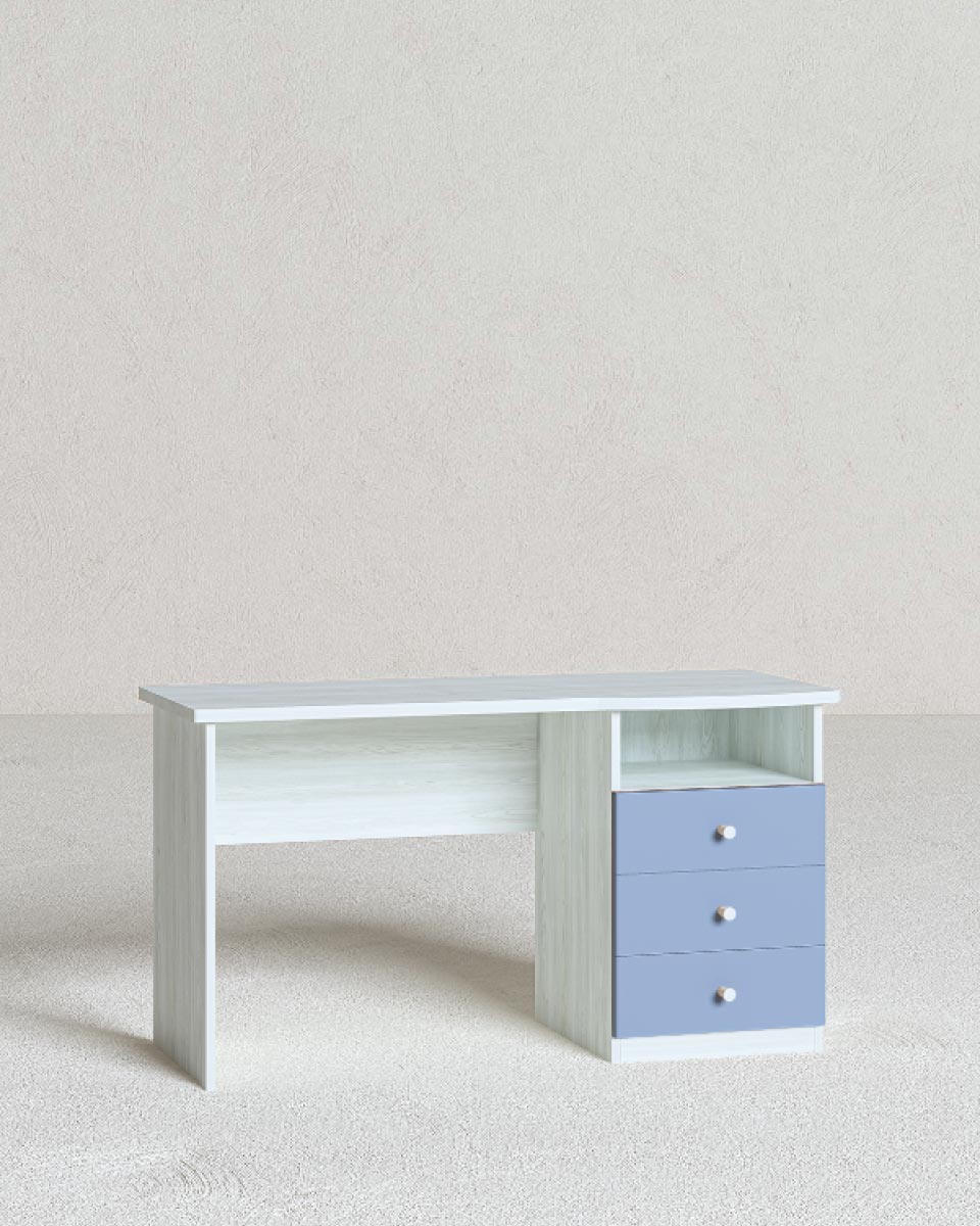 Per l’organizzazione degli abiti e della biancheria, la cameretta Aladin integra l’armadio Celeste, caratterizzato da 2 ante e 2 cassetti: una soluzione salvaspazio che coniuga ampia capacità contenitiva e stile sobrio, arricchita dalla possibilità di personalizzazione con varianti colore. Sopra la scrivania o accanto al letto, la mensola Norema completa la composizione con un tocco di leggerezza, offrendo uno spazio dedicato a libri, oggetti decorativi o accessori da avere sempre a portata di mano.