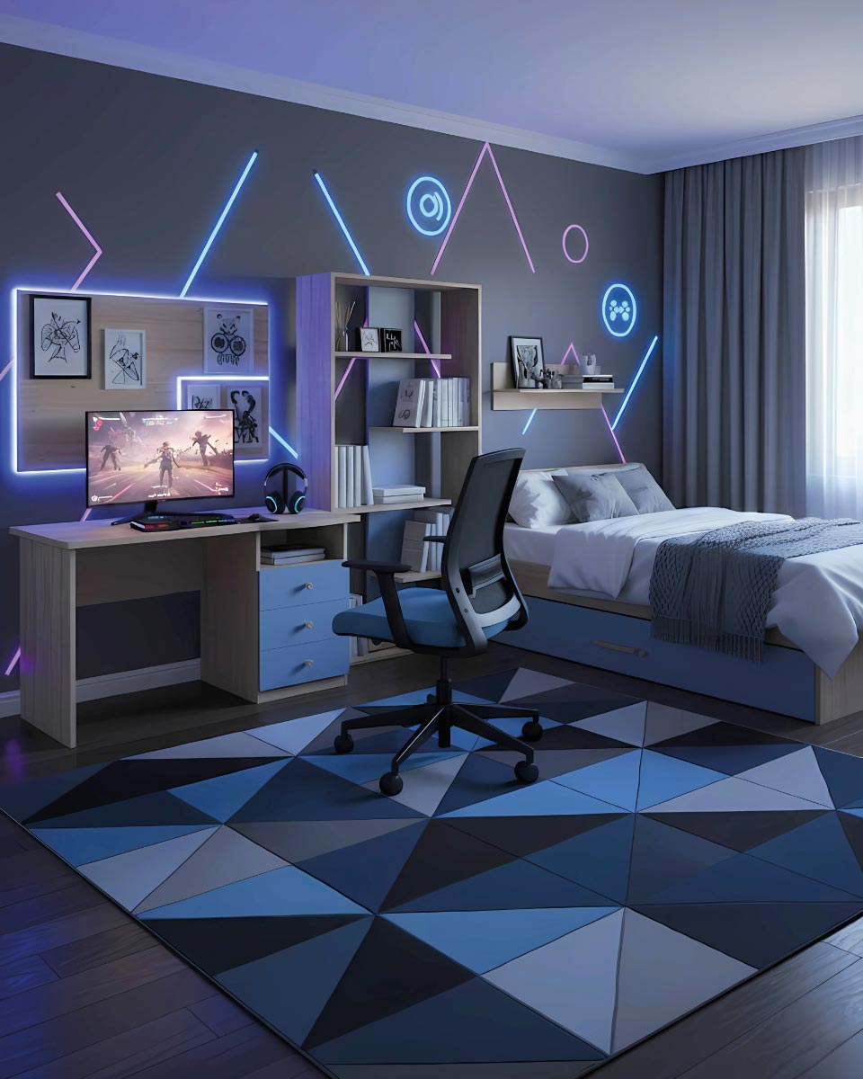 Cameretta Completa Venom Avio - Virginia/avio per ragazzi e bambini - Scrittoio Genius Dx - Letto Jonny con letto estraibile- Libreria Ardela