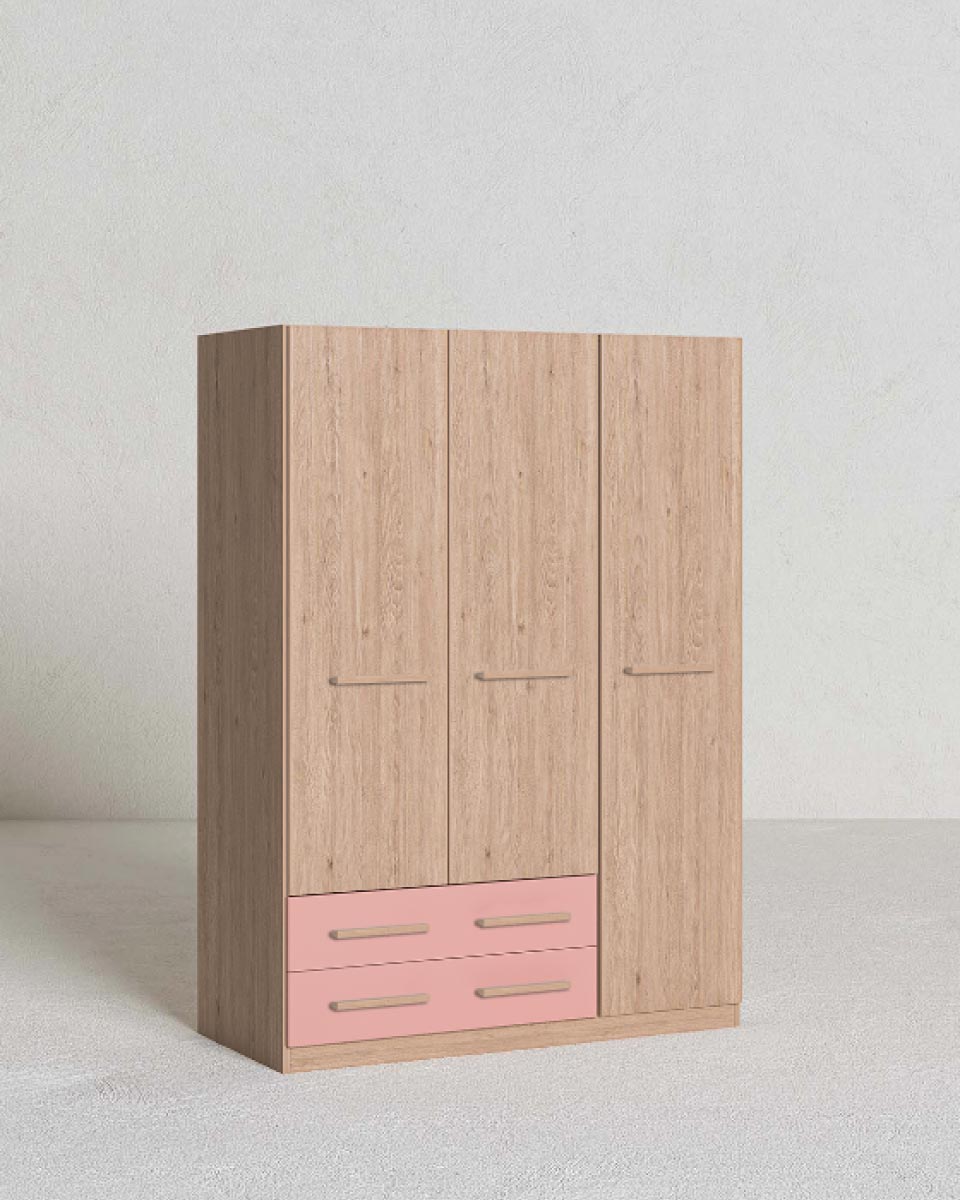 Cameretta Completa Asia - Virginia/Rosa per ragazzi e bambini - Scrittoio Modern - Letto Easy con pediera - Armadio Leon - Comodino Rima
