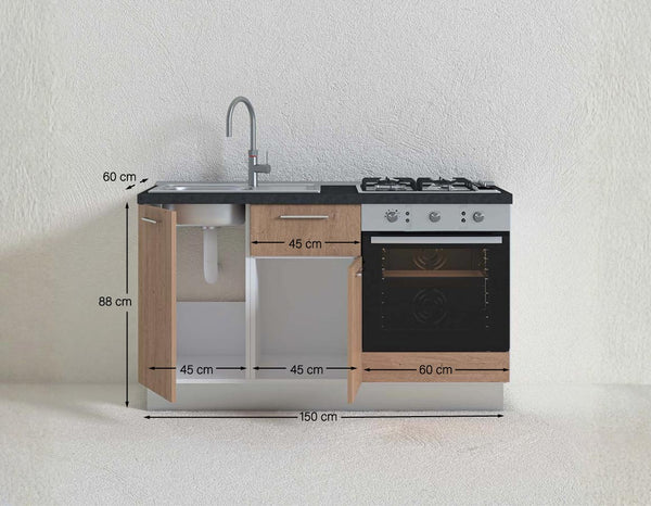 Cucina compatta Gaia - 150 cm Linea Elettra - Blocco cucina moderno base per appartamento, B&B e hotel - Personalizzabile in finiture e colori - Personalizzabile in composizione ed accessori