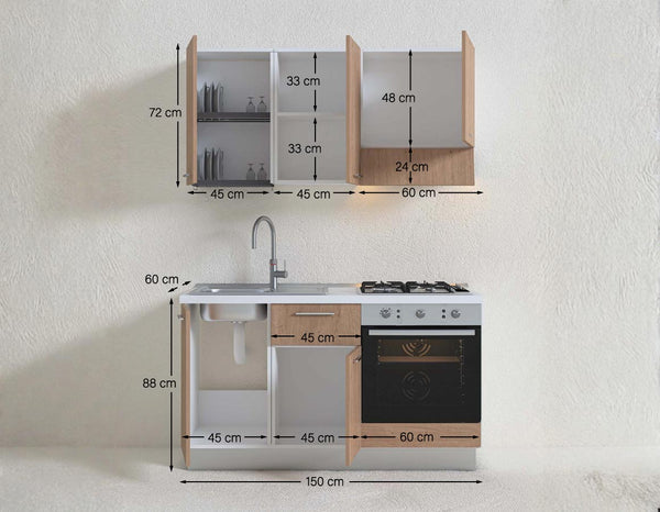 Cucina compatta Uragano - 150 cm Linea Elettra - Cucina moderno per appartamento, B&B e hotel - Personalizzabile in finiture e colori - Personalizzabile in composizione ed accessori