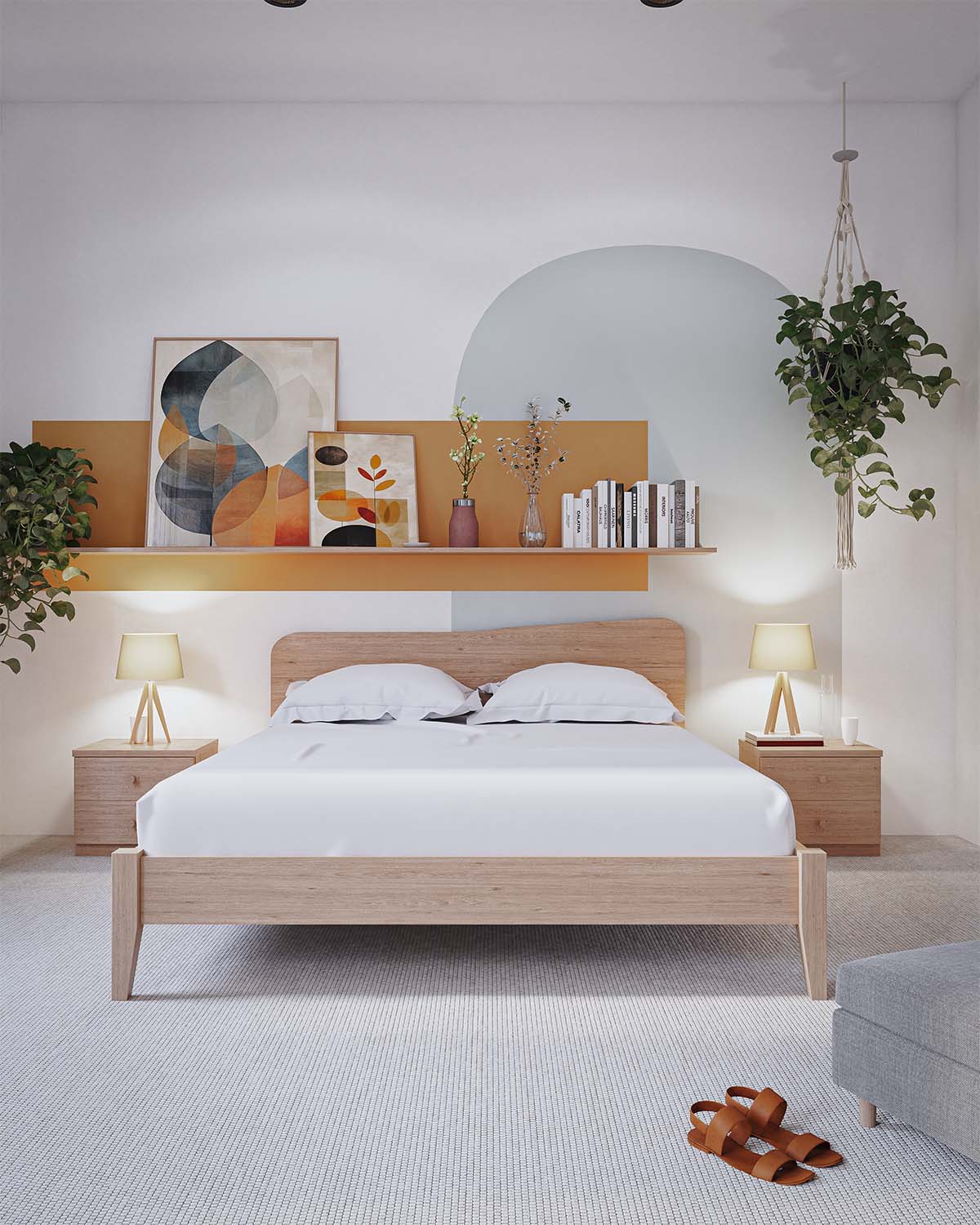 Letto Fly con piedi in legno - Matrimoniale - 10 colori - Design moderno