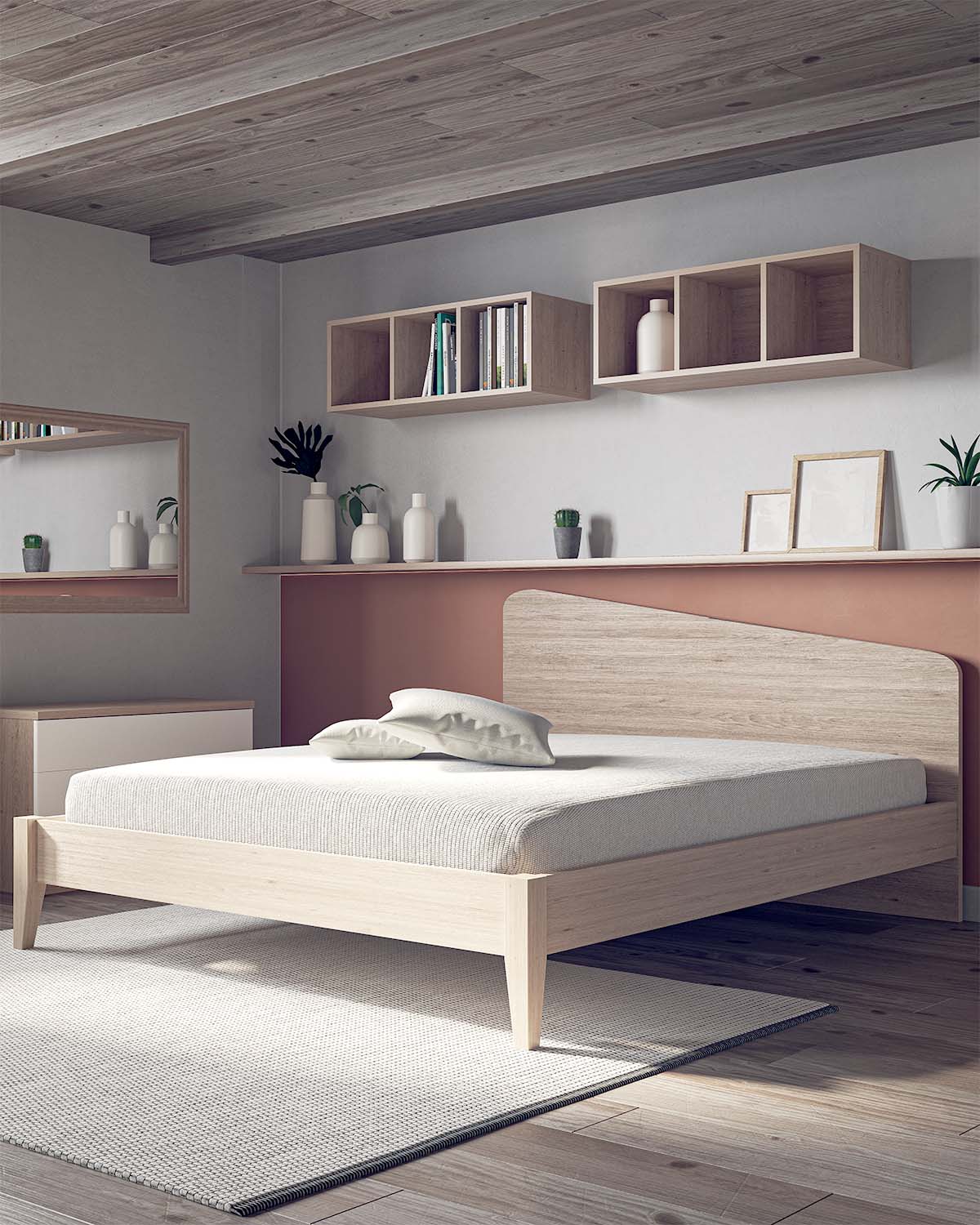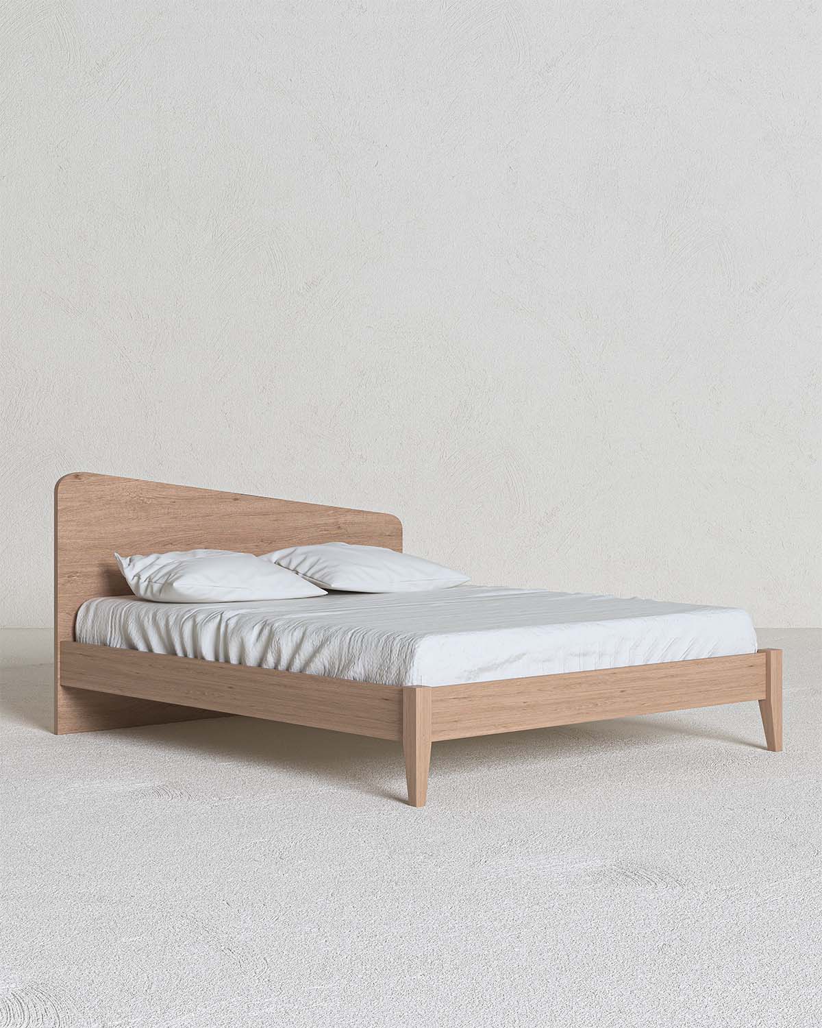 Letto Luna con piedi in legno - Matrimoniale - 10 colori - Design moderno