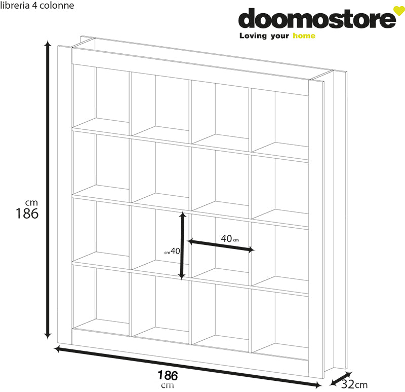 Libreria 4 colonne OSLO Betulla per arredare ufficio camera soggiorno cucina L.186xH186xP.32 cm