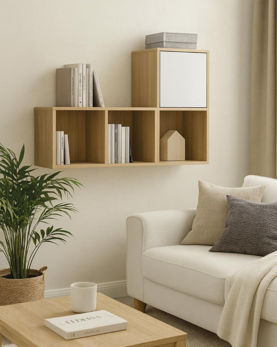 Libreria a cubi Looma - Scaffale modulare 4 moduli in truciolato - Con 3 vani aperti e 1 cubo con anta - 5 varianti colore - Design moderno