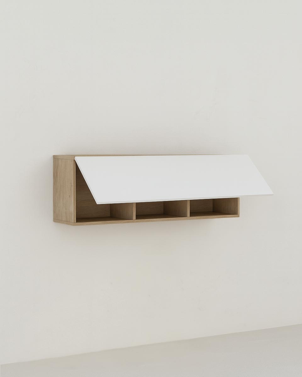 Il Pensile a muro Rivela è una libreria sospesa dal design moderno ed elegante, pensata per unire funzionalità e stile in qualsiasi ambiente della casa. La struttura in effetto legno dona calore e raffinatezza, mentre l’anta frontale ribaltabile, disponibile in 5 varianti di colore, permette di personalizzare il mobile in base ai propri gusti e alle esigenze d’arredo.