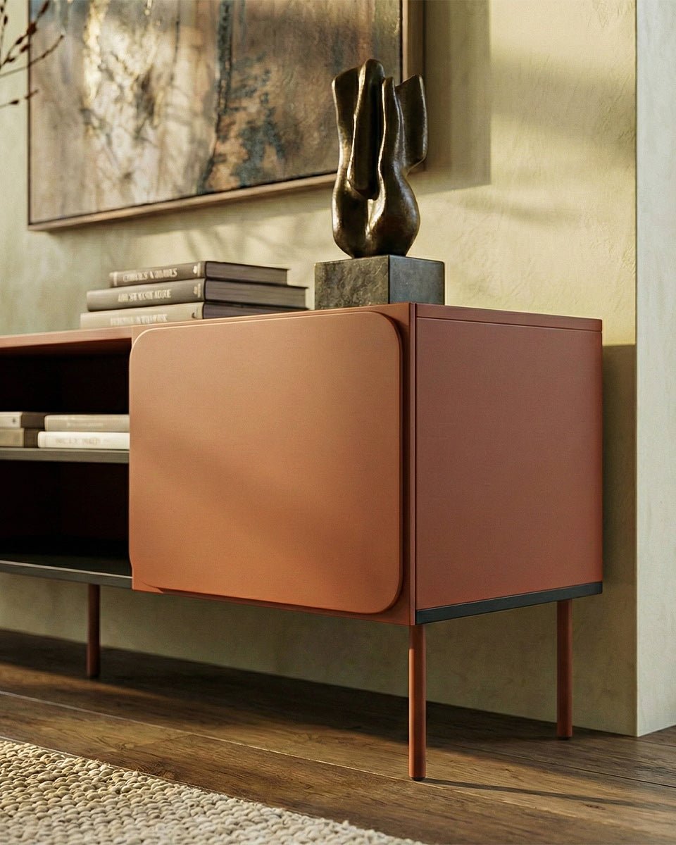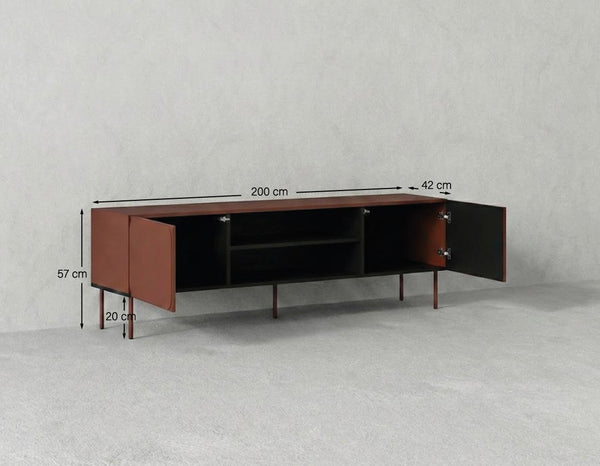 Madia Apice - Set Angle - Mobile con vano per soggiorno, moderno - 2 ante - L. 200 cm x H. 57 cm x P.42 cm - Terra di Siena bruciata