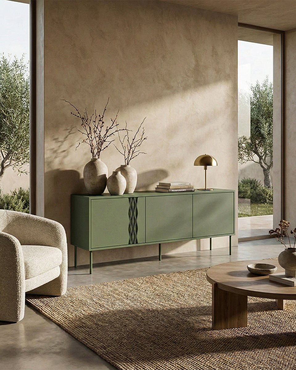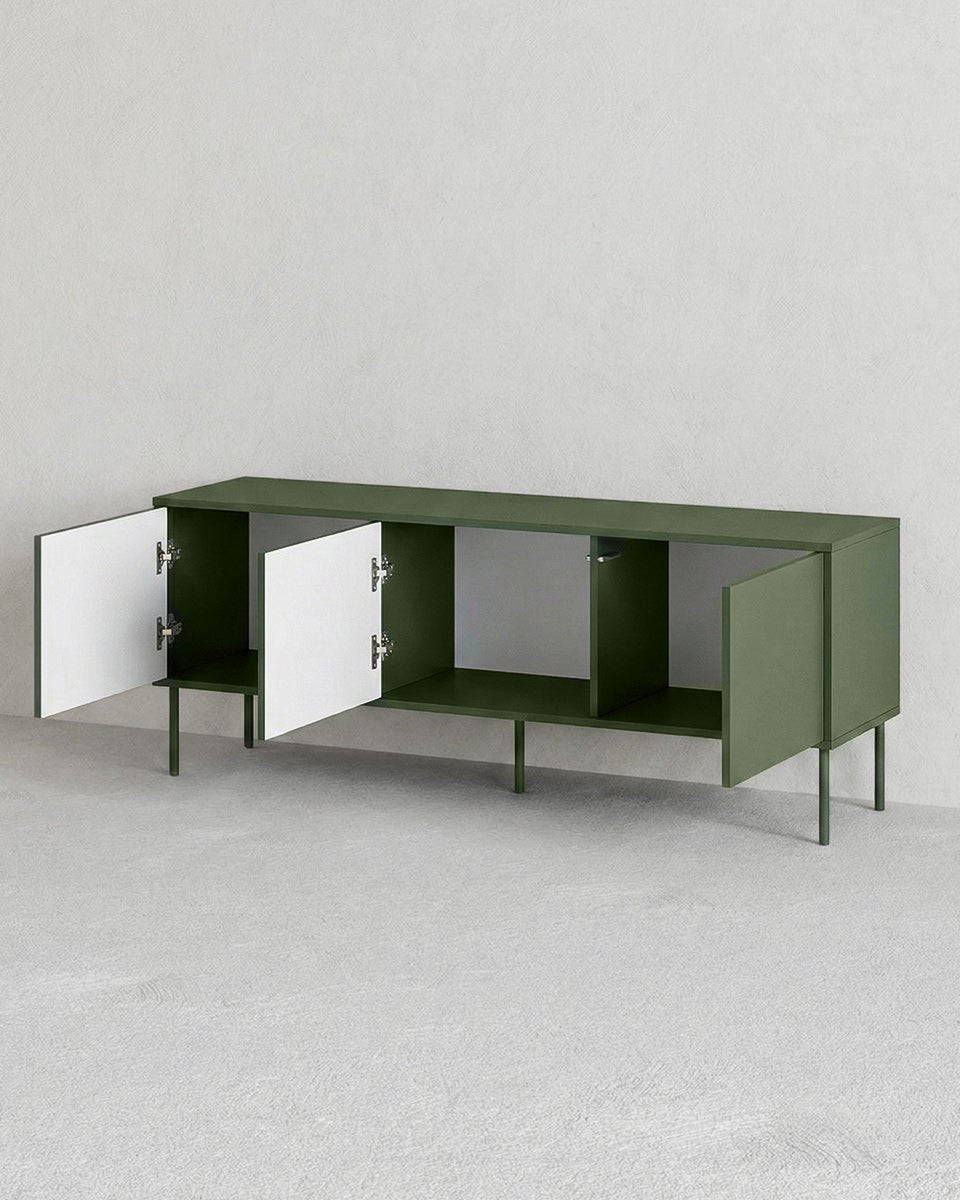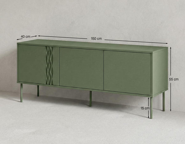 Madia Cruna - Set Braid - Mobile Tv per soggiorno, moderno - 3 ante - L. 150 cm x H. 55 cm x P.40 cm - Oliva