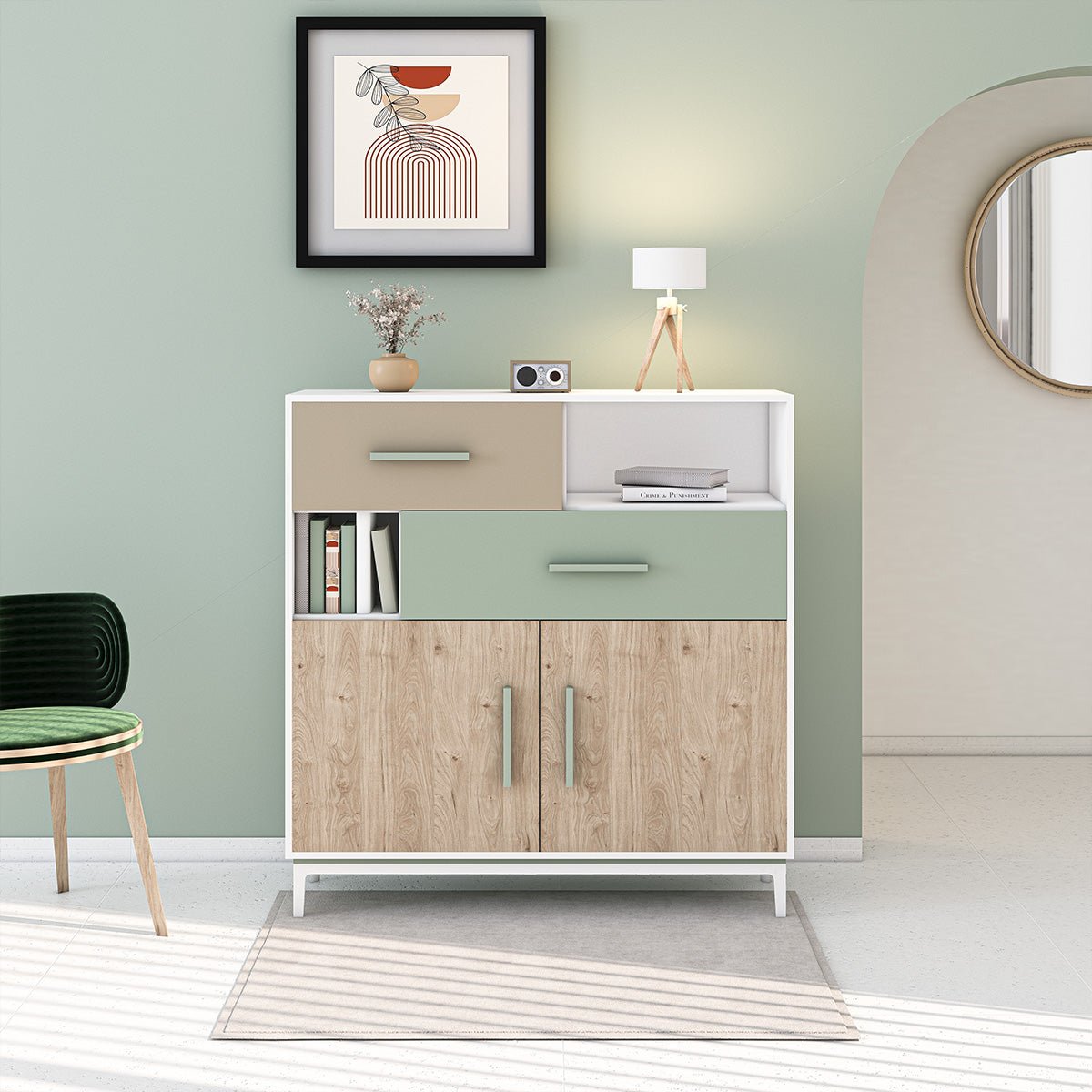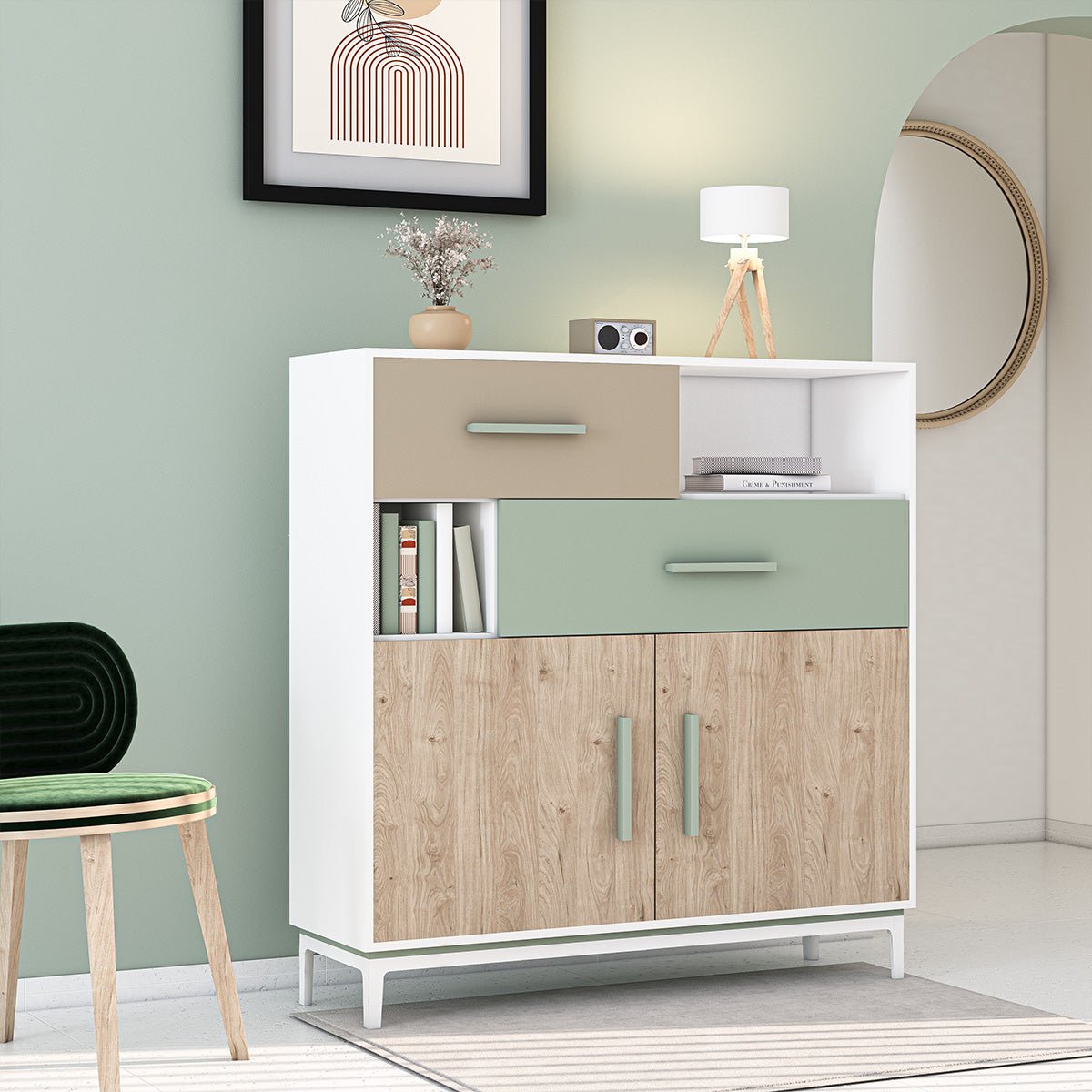 Madia Moderna 2 ante 2 cassetti Biancoluna/Clay/Oliva L.136xH.132xP.41