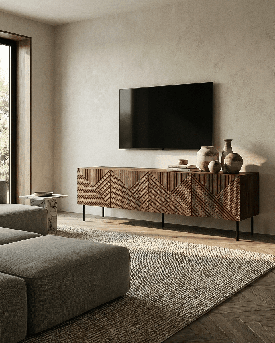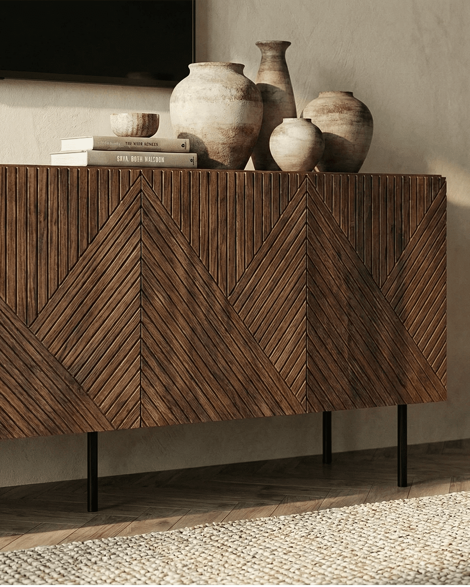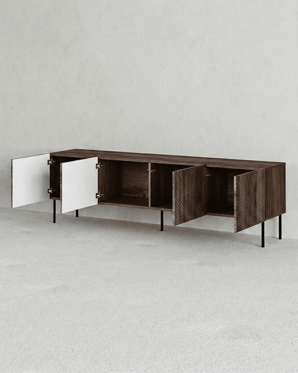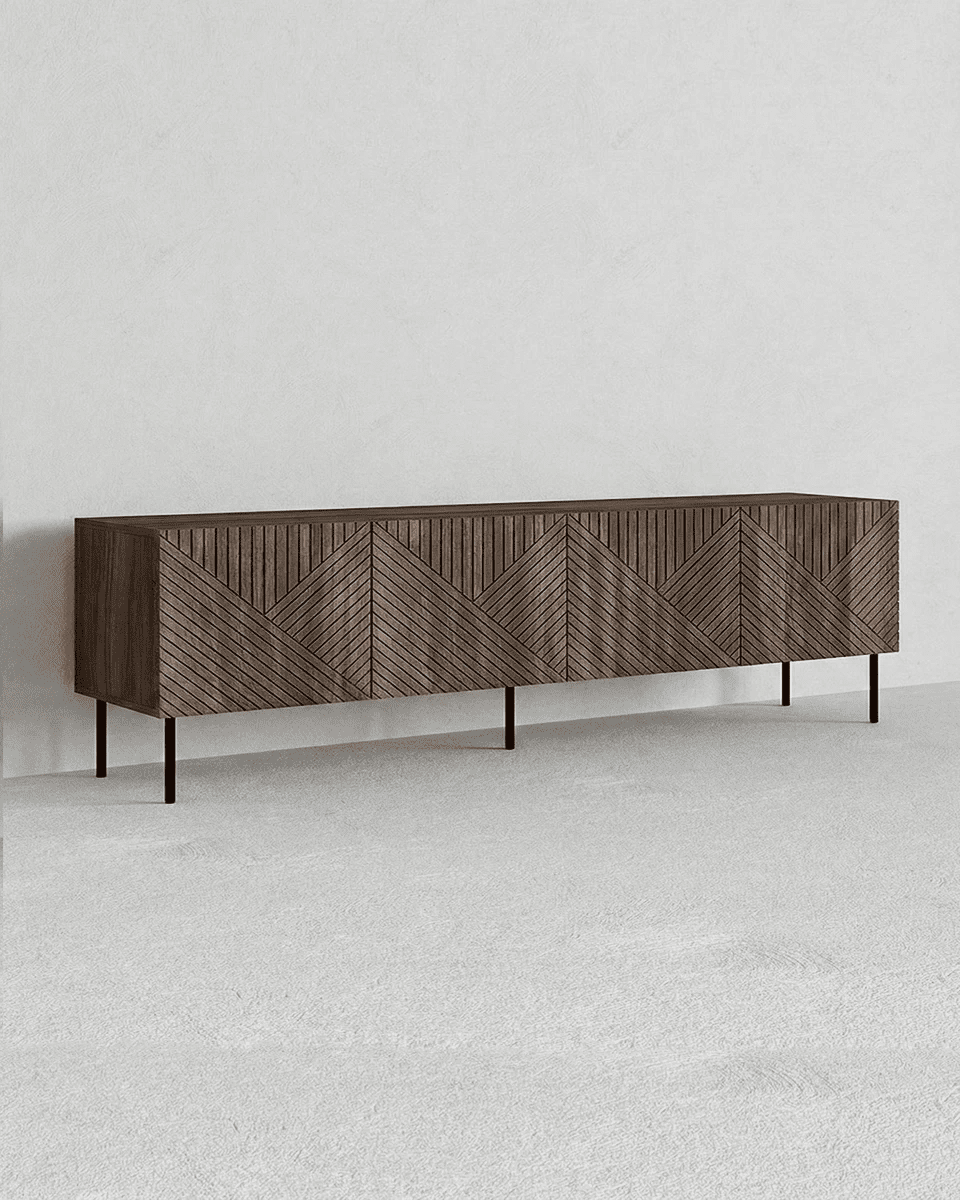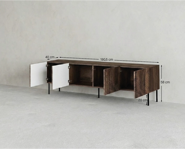 Madia Obsidian - Set Darc - Mobile Tv per soggiorno, contemporaneo - 4 ante - L. 190,5 cm x H. 58 cm x P. 40 cm - Ebano scuro