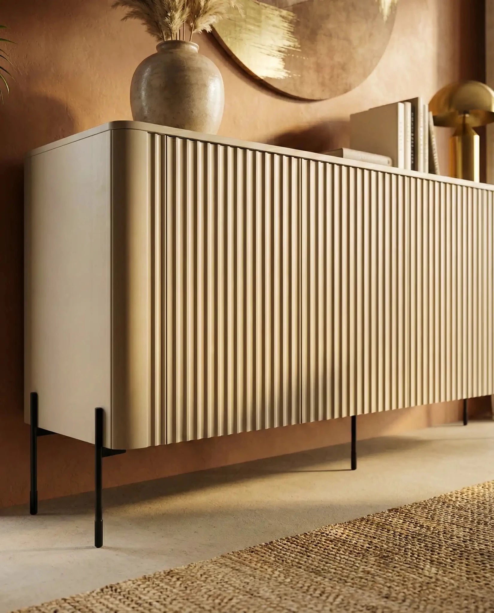 Madia Sinus - Set Rota - Mobile per soggiorno e ingresso, moderno - 4 ante - L. 190 cm x H. 80 cm x P. 40 cm - Cashmere