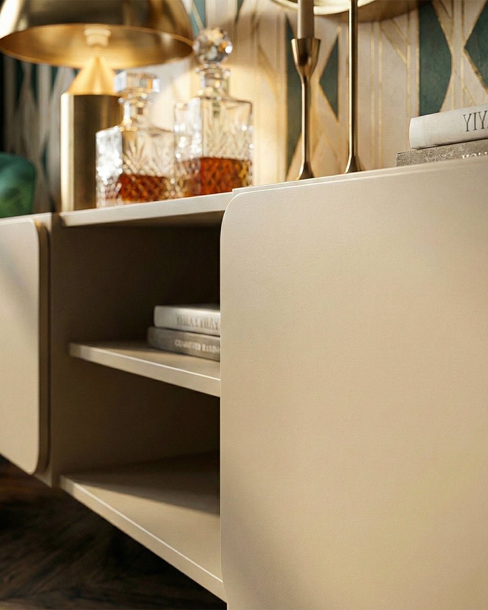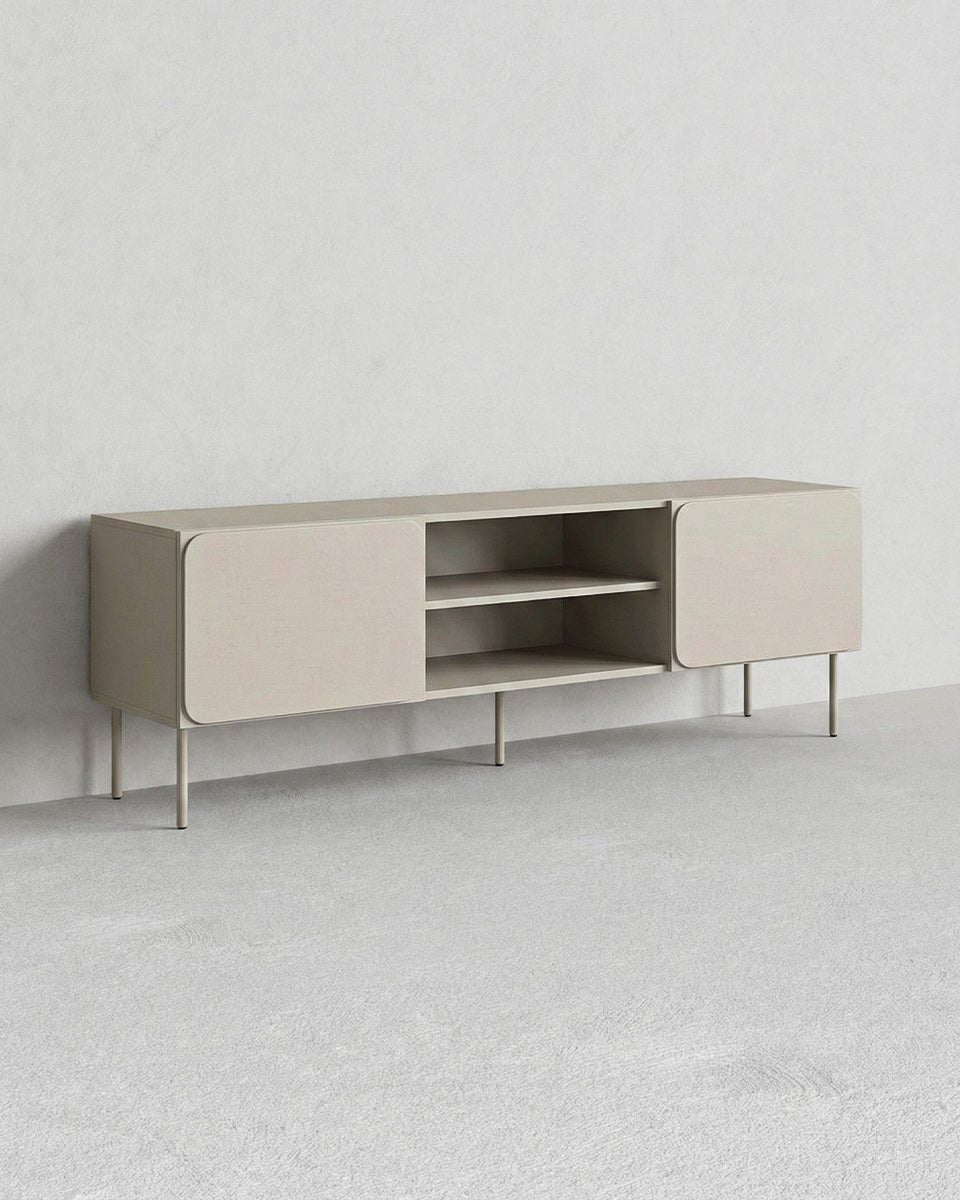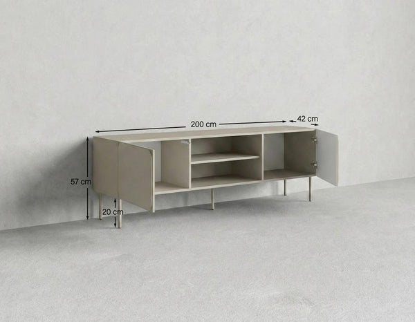 Madia Tange - Set Angle - Mobile con vano per soggiorno, moderno - 2 ante - L. 200 cm x H. 57 cm x P.42 cm - Cashmere