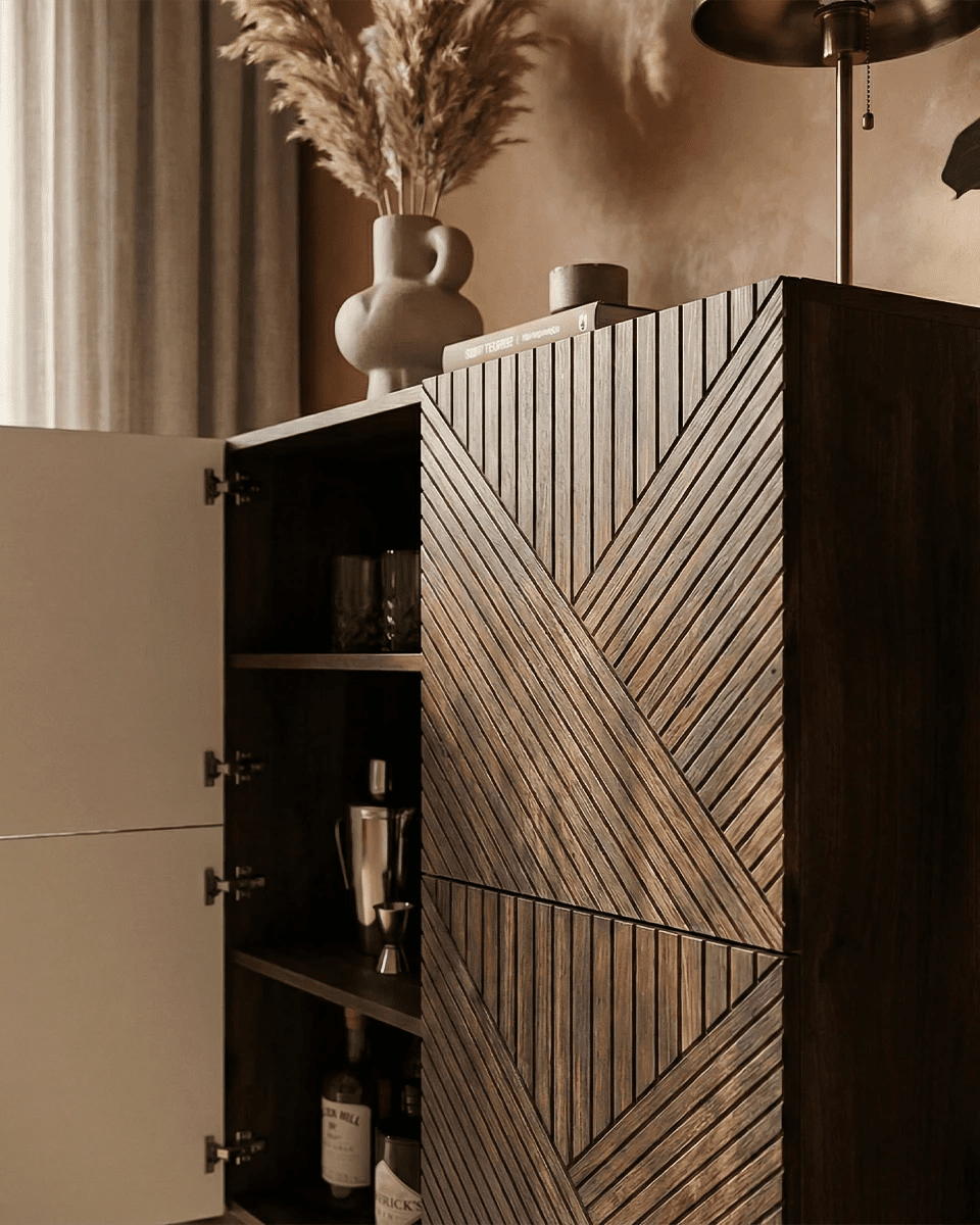 Madia Umbra - Set Darc - Mobile per soggiorno e ingresso, contemporaneo - 4 ante - L. 88,5 cm x H. 117,5 cm x P. 40 cm - Ebano scuro