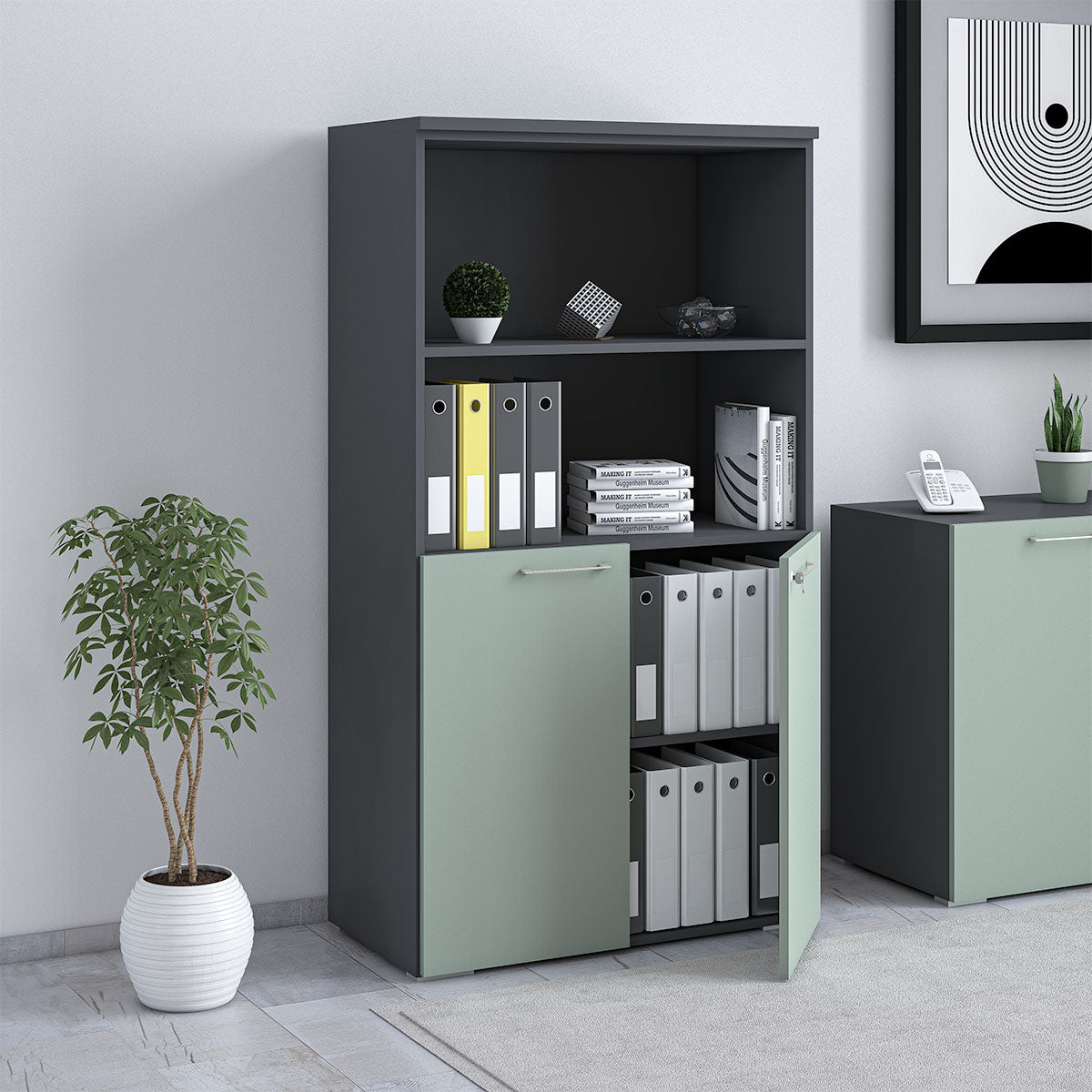 Mobile Antracite Ufficio due vani a giorno e due ante L.90xH.160xP.45