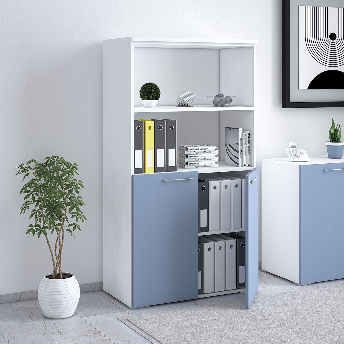 Mobile Bianco Ufficio due vani a giorno e due ante L.90xH.160xP.45