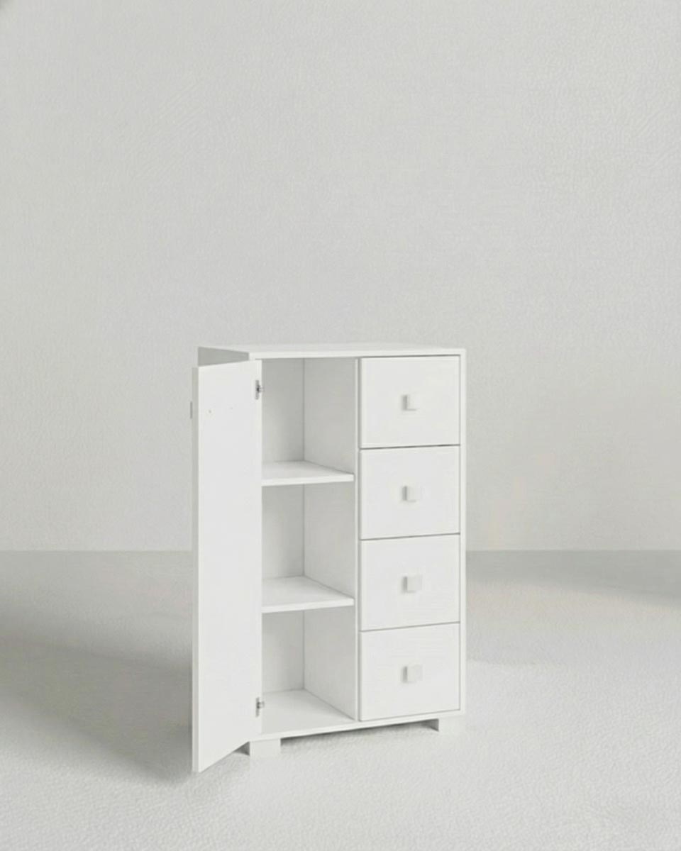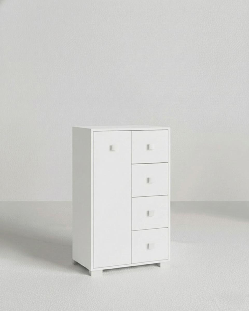 Mobile contenitore Fiore - Mobile multiuso 1 anta e 4 cassetti - Struttura bianco - 2 ripiani regolabile incluso - 75x112x45 cm