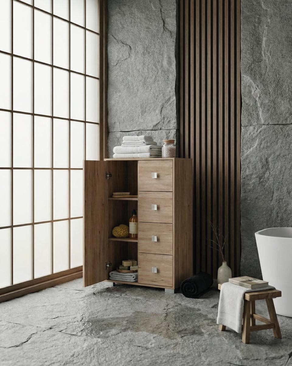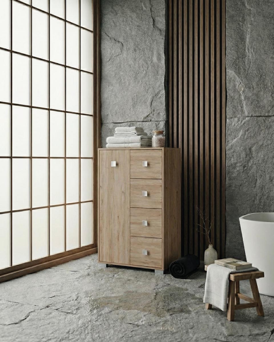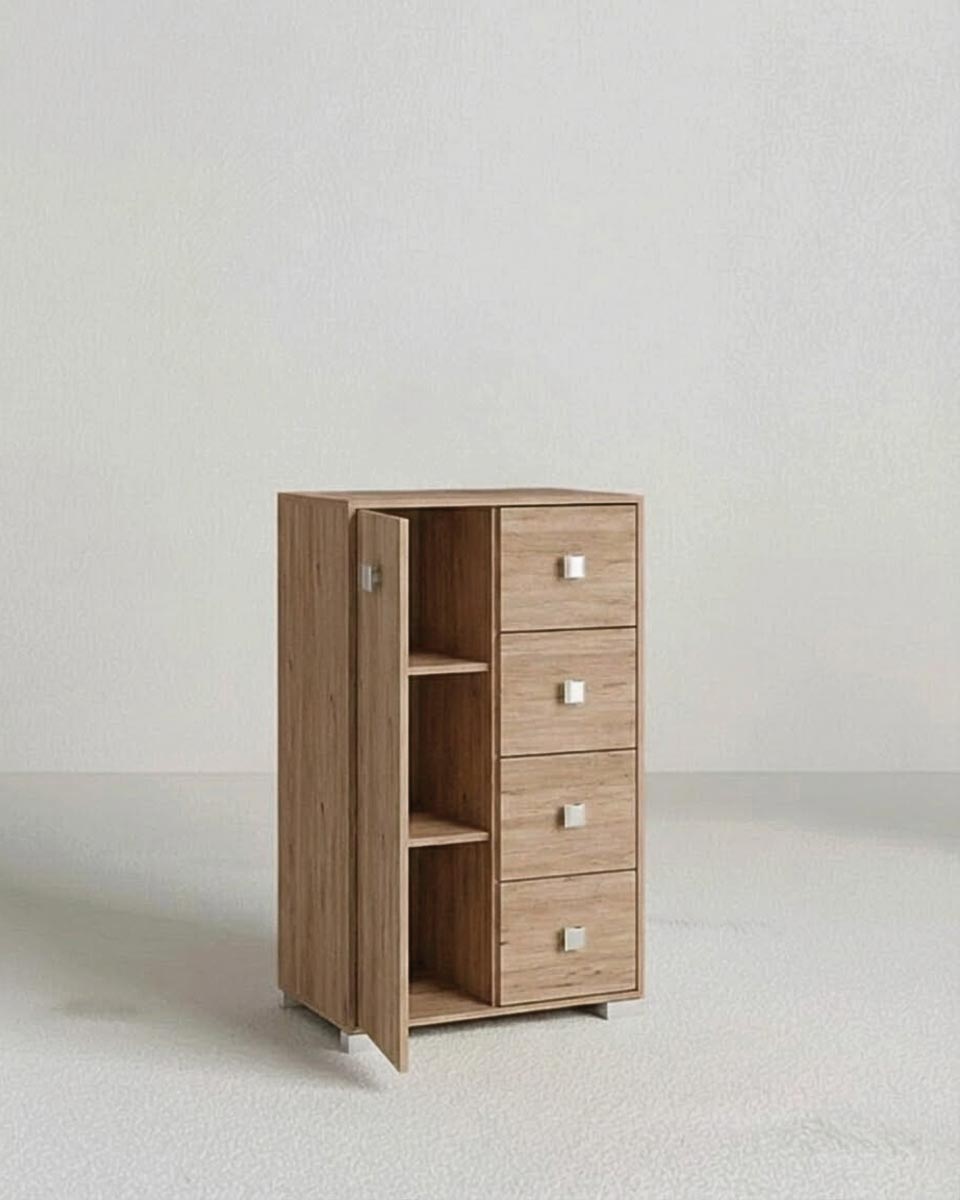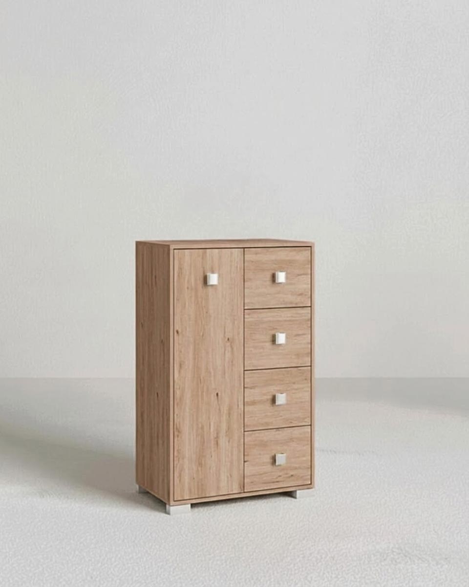 Mobile contenitore Fiore - Mobile multiuso 1 anta e 4 cassetti - Struttura virginia - 2 ripiani regolabile incluso - 75x112x45 cm