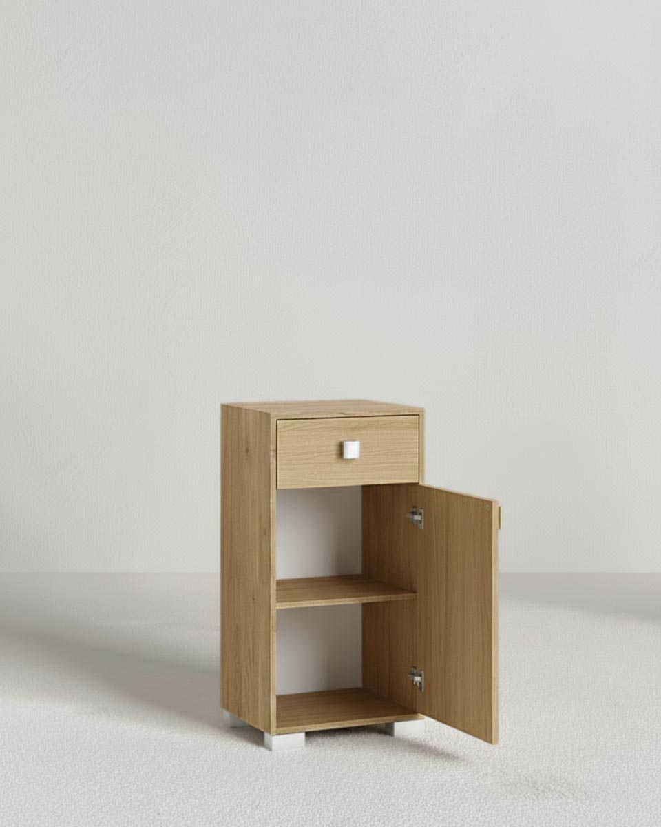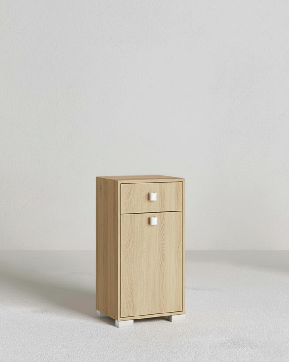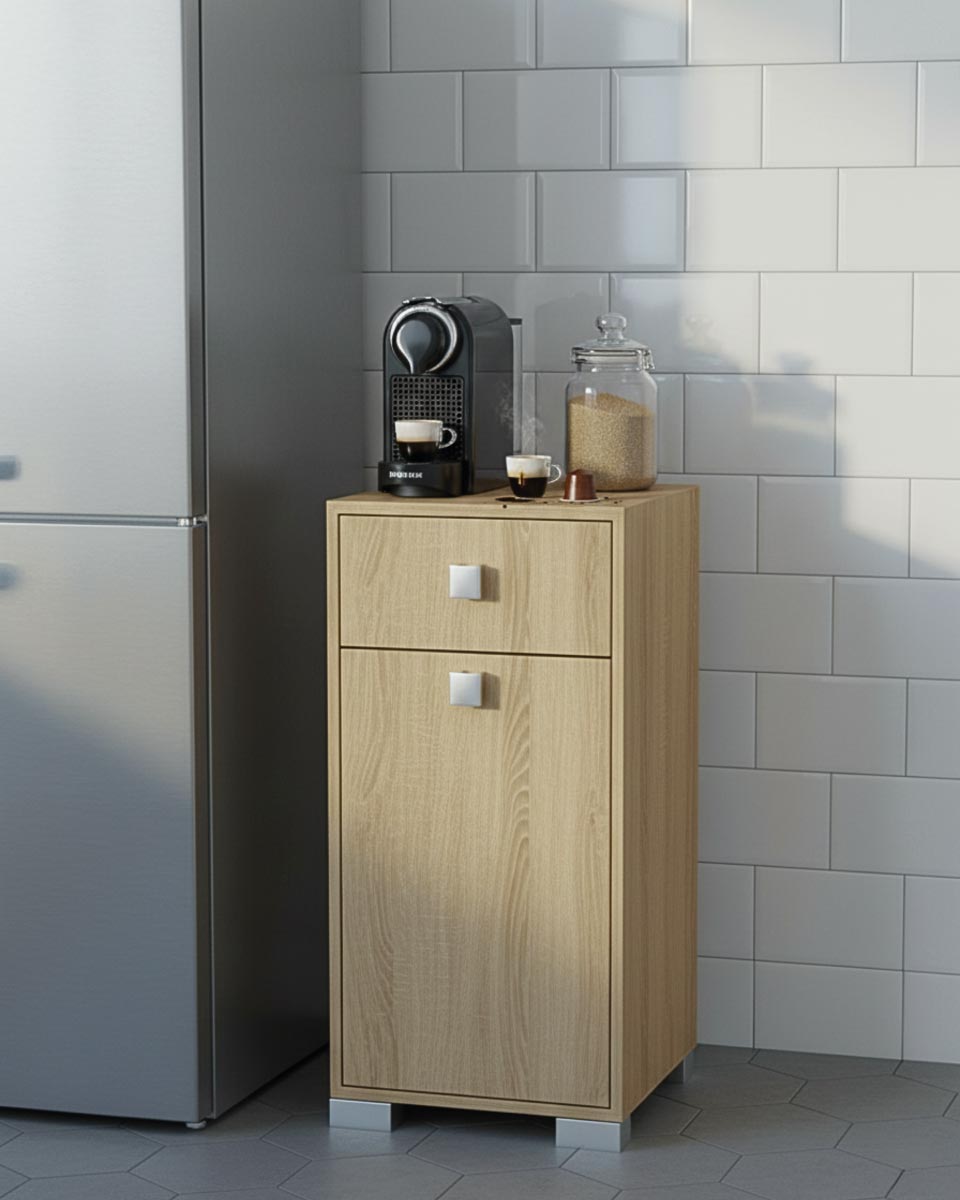 Mobile contenitore Lena - Mobile multiuso 1 anta e 1 cassetto - Struttura virginia - Ripiano regolabile incluso - 46x35x80 cm