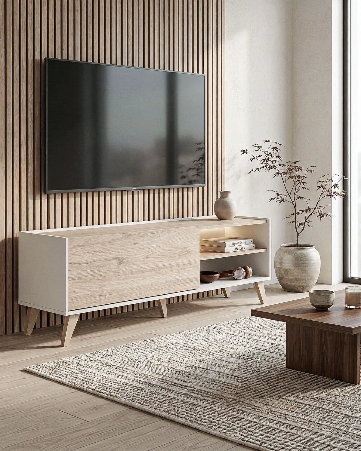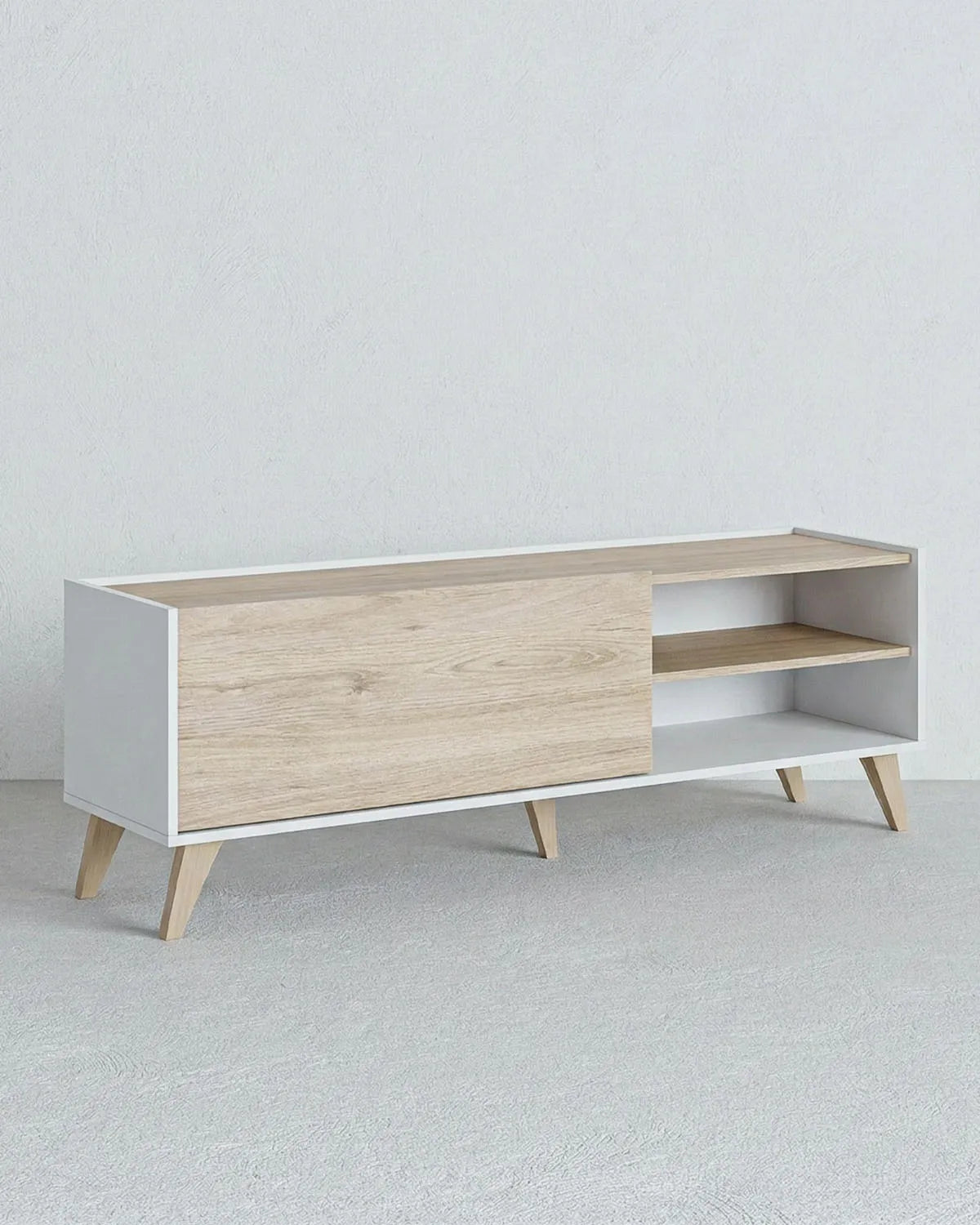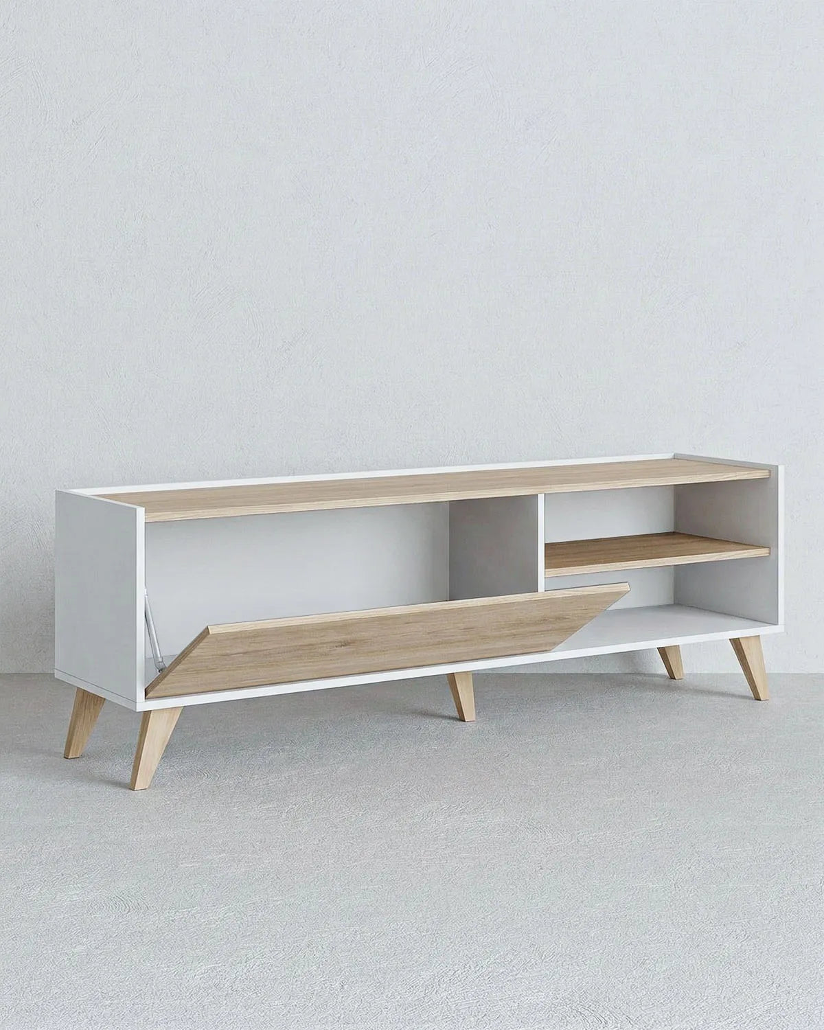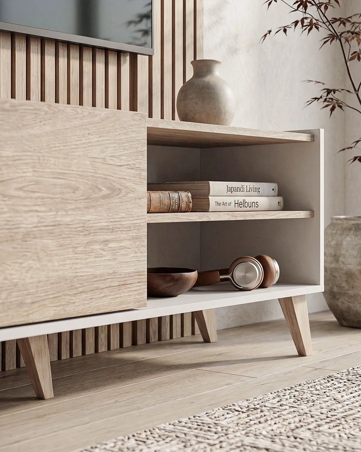 Il Mobile TV Lars è un elegante complemento d’arredo in stile nordico, progettato per valorizzare il soggiorno con linee pulite, materiali moderni e grande funzionalità. Grazie al suo design minimal e alla raffinata combinazione di bianco e finitura rovere naturale, questo mobile porta TV si integra perfettamente in ambienti contemporanei, scandinavi o moderni.