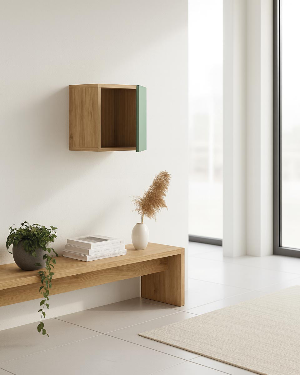 Pensile a muro Boxy - Libreria a muro con anta in truciolato - 5 varianti colori anta - Design moderno e salvaspazio