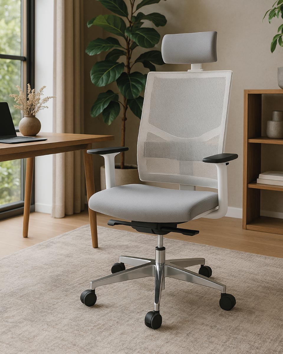 La Poltrona Eclipse è una sedia da ufficio direzionale pensata per offrire ergonomia, comfort e design moderno. Dotata di schienale in rete traspirante con supporto lombare regolabile, favorisce la corretta postura e mantiene una piacevole sensazione di freschezza anche durante le lunghe ore di lavoro. Il poggiatesta regolabile e imbottito garantisce un sostegno aggiuntivo a collo e testa, riducendo l’affaticamento muscolare.