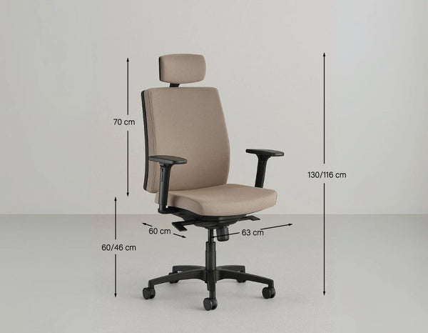 Poltrona Madras – Sedia ufficio Mesh – Poggiatesta rivestito – Braccioli 2D regolabili – Base girevole – Altezza regolabile