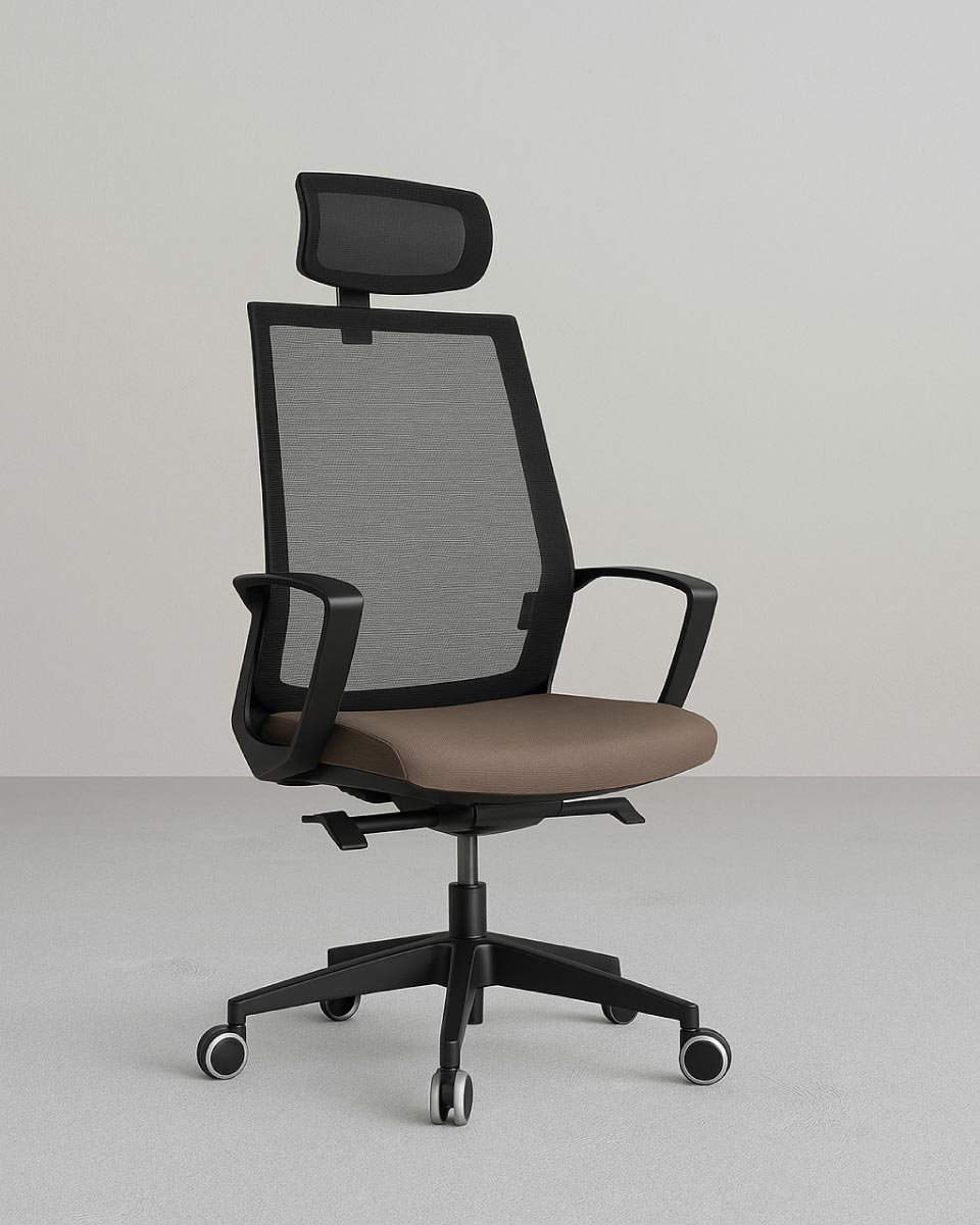 Poltrona Parker – Sedia ufficio Mesh – Schienale alto in rete traspirante – Braccioli fissi – Seduta in poliuretano espanso – Base in nylon con ruote antishock – Altezza regolabile