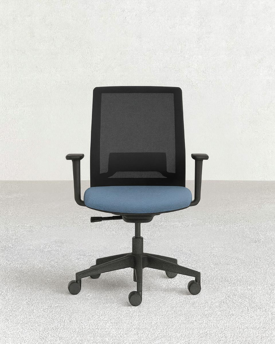 Poltrona Tecna – Sedia ufficio Mesh – Schienale in rete – Braccioli regolabili 1D – Poggiareni regolabili – Base girevole con meccanismo antishock – Altezza regolabile