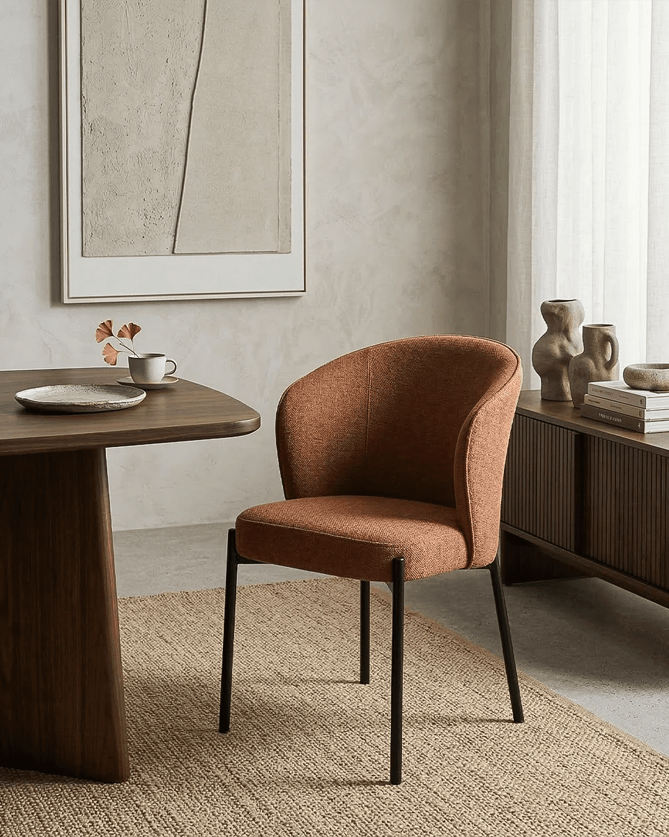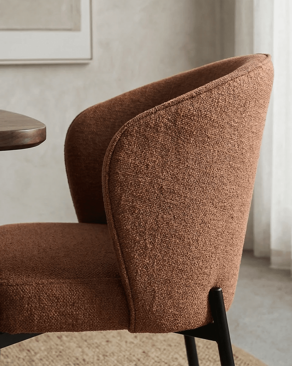 Sedia Agata - Sedia moderna in tessuto color Bronzo - Struttura in metallo nero opaco - Design moderno - 1 pz