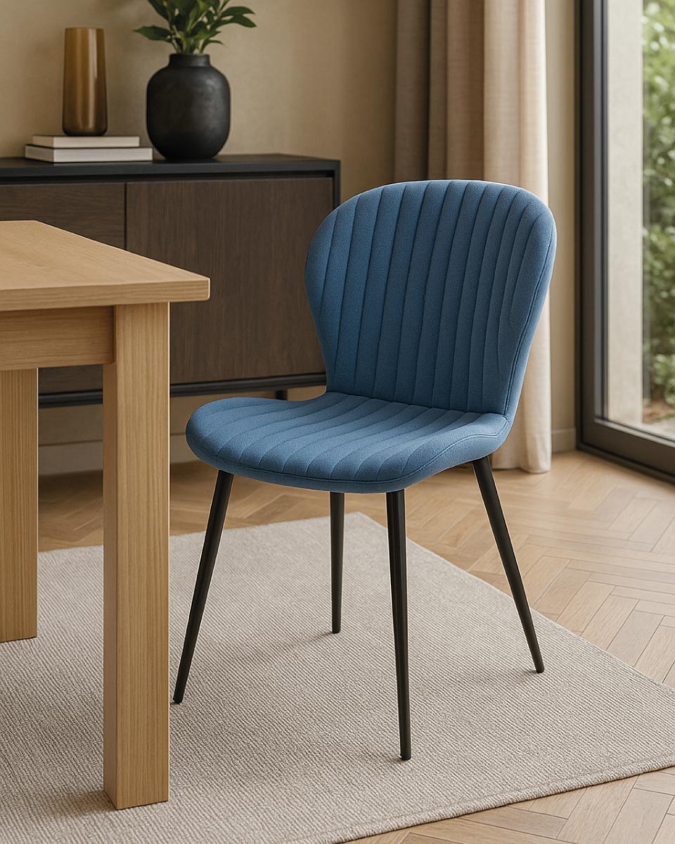 Sedia Cloud - Sedia moderna in tessuto vellutato petrolio - Struttura in metallo nero - Design moderno - 1 pz