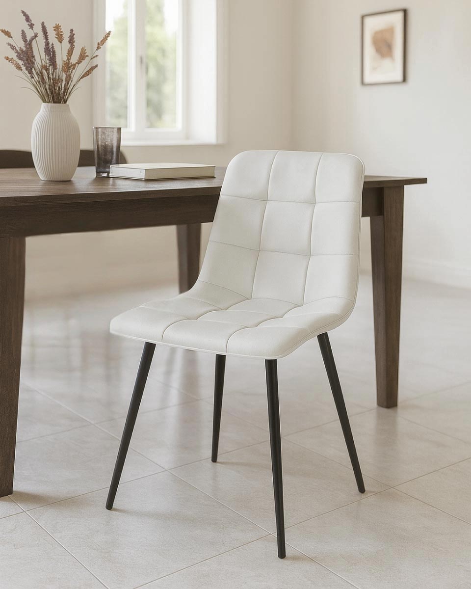 Sedia Jade - Sedia moderna in tessuto bianco - Struttura in metallo nero opaco - Design moderno - 1 pz