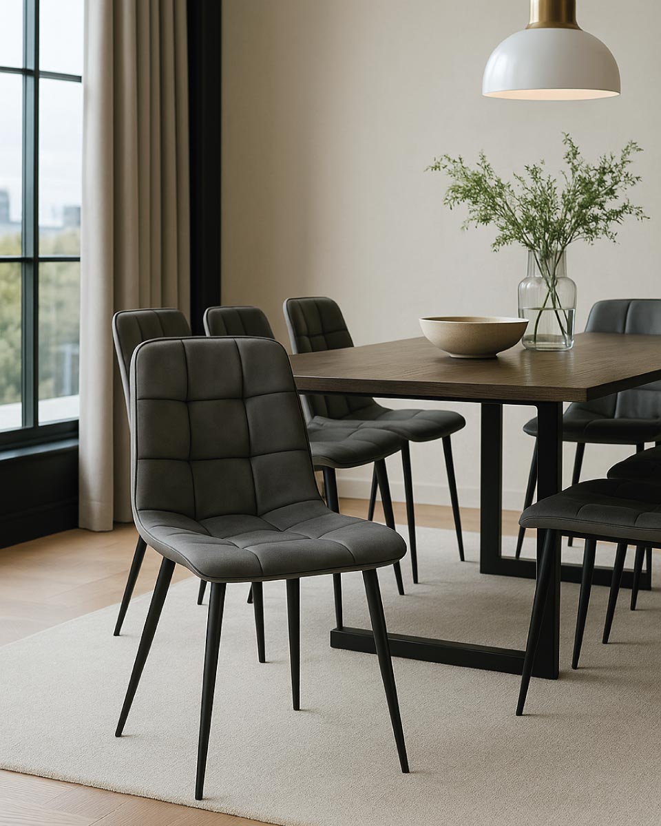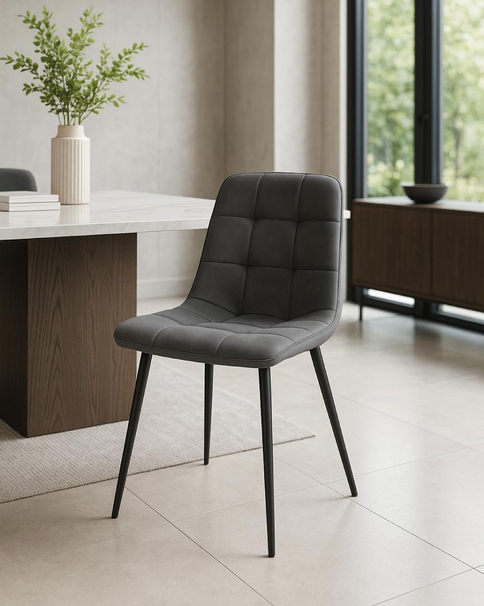 Sedia Jade - Sedia moderna in tessuto grigio - Struttura in metallo nero opaco - Design moderno - 1 pz