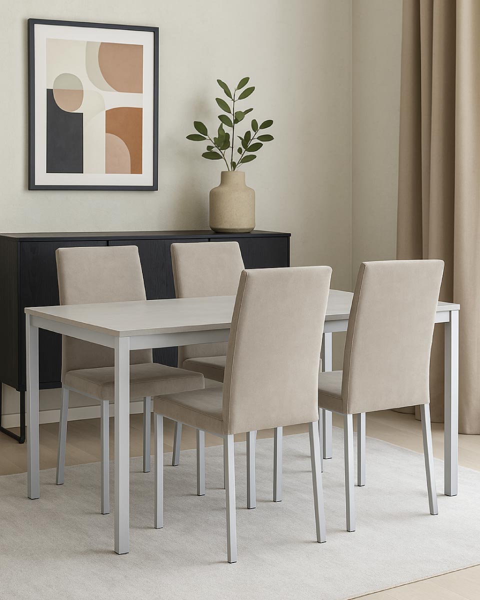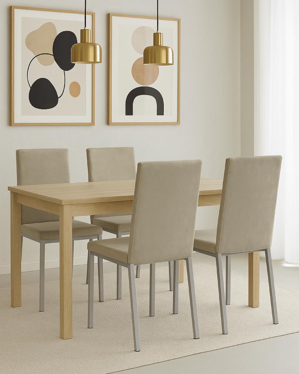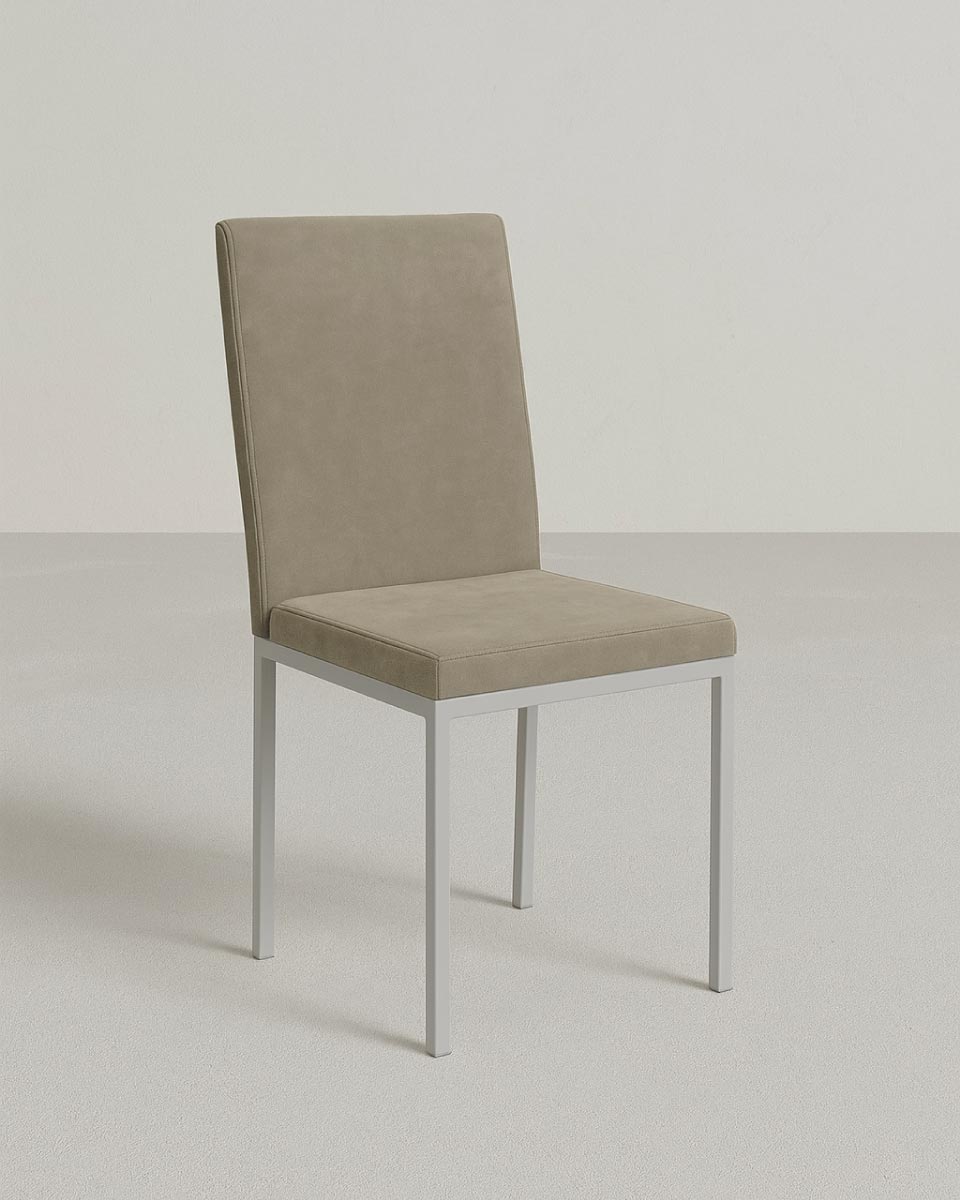 Sedia Licia - Sedia moderna in tessuto tortora - Struttura in metallo silver satinato - Design moderno - 1 pz