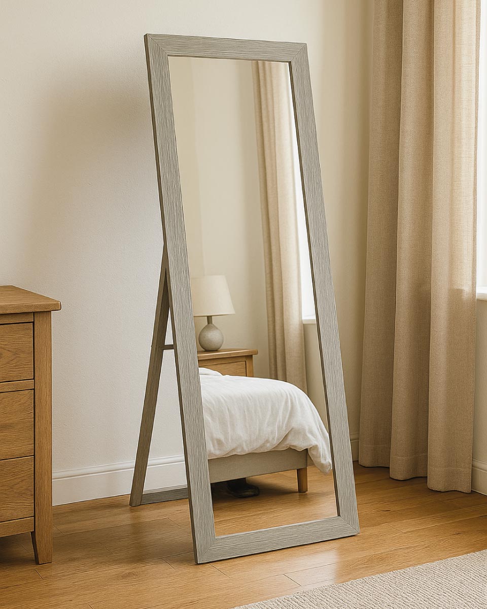 Specchio da Terra Lucea 40x160 cm – Cornice in Legno Bianco o Silver – Struttura Autostabile per Camera o Ingresso