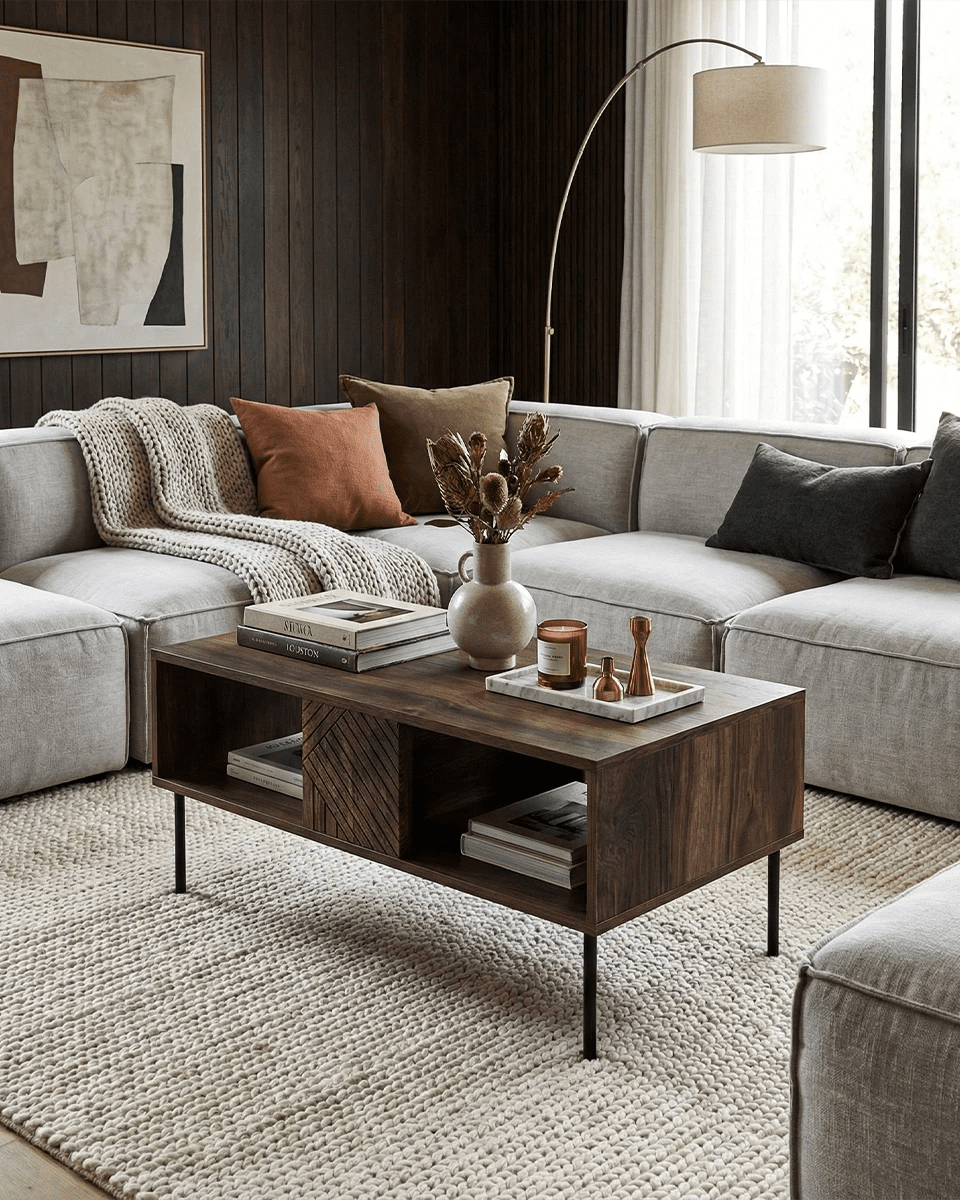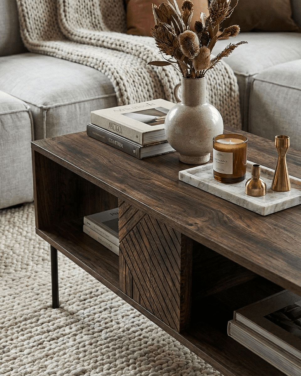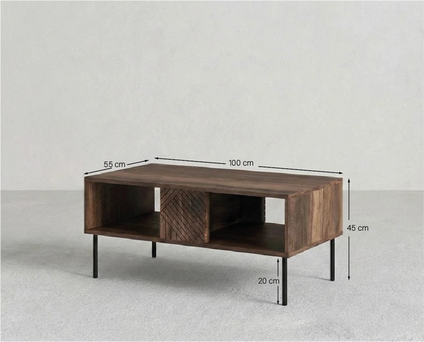 Tavolino Cavu - Set Darc - Tavolino basso per soggiorno - Design contemporaneo - L. 100 cm x H. 45 cm x P. 55 cm - Ebano scuro