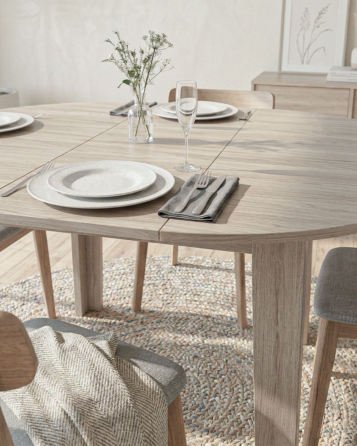 Tavolo RAL – Tavolo da Pranzo Rotondo Estensibile 120/155 cm – Design Moderno in Olmo o Bianco Spatolato